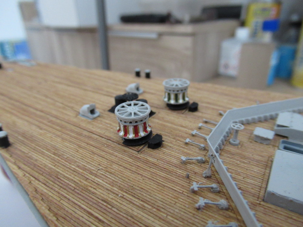 Hab dann immer mal ein paar Kleinigkeiten an der Bismarck gemacht ( mal hier einen Poller angepinselt , mal da etc )
