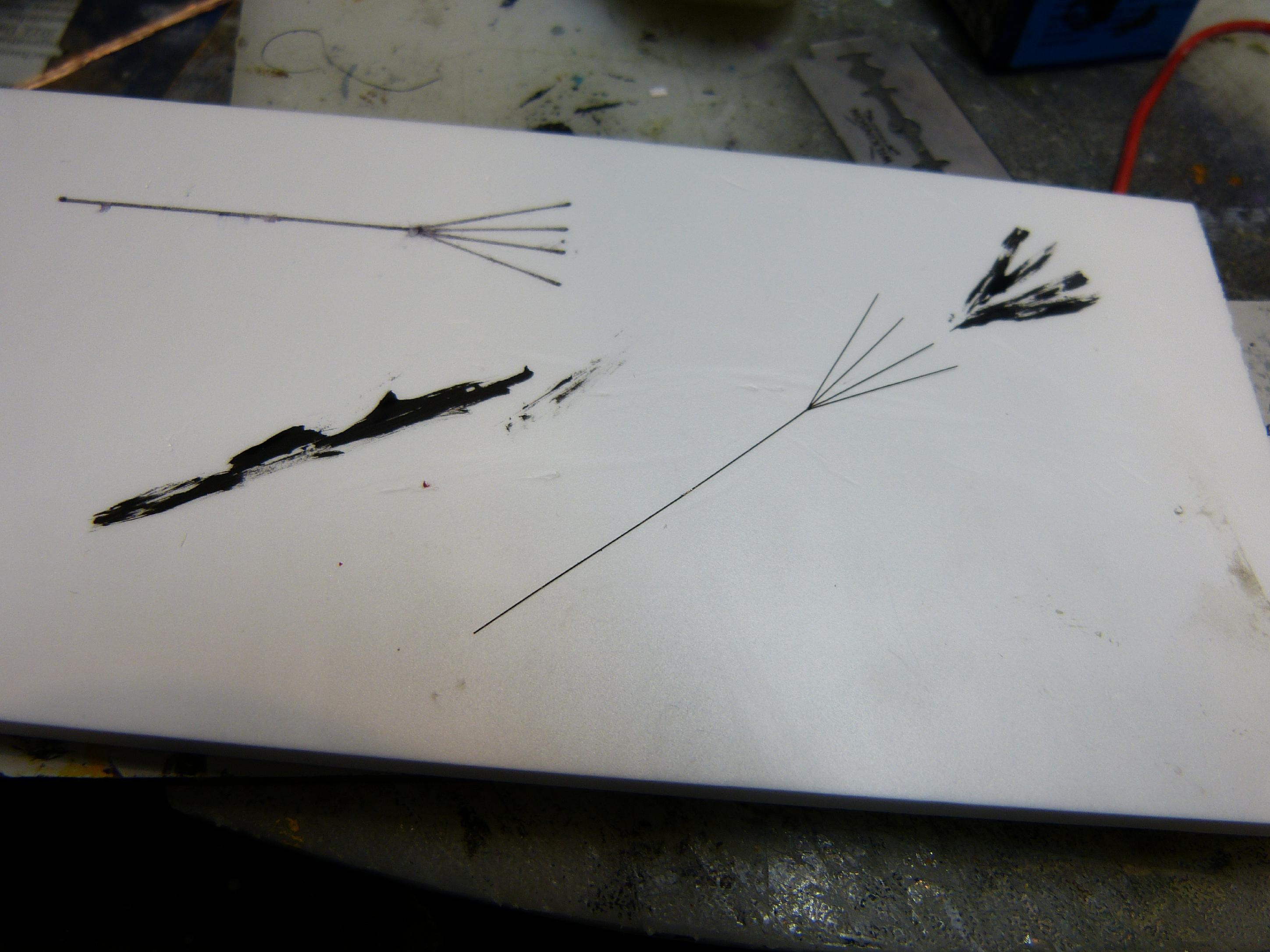 Für die Verbindung der oberen Antennen zum Schornstein-Isolator habe ich feinste Cu-Litze verwendet (schwarz lackiert), denn diese wäre mit dem gummiartigen Infini-Material kaum möglich gewesen. Dieses Teil sucht man z.B. bei Kagero vergeblich, auf Originalfotos ist es jedoch häufig zu sehen.