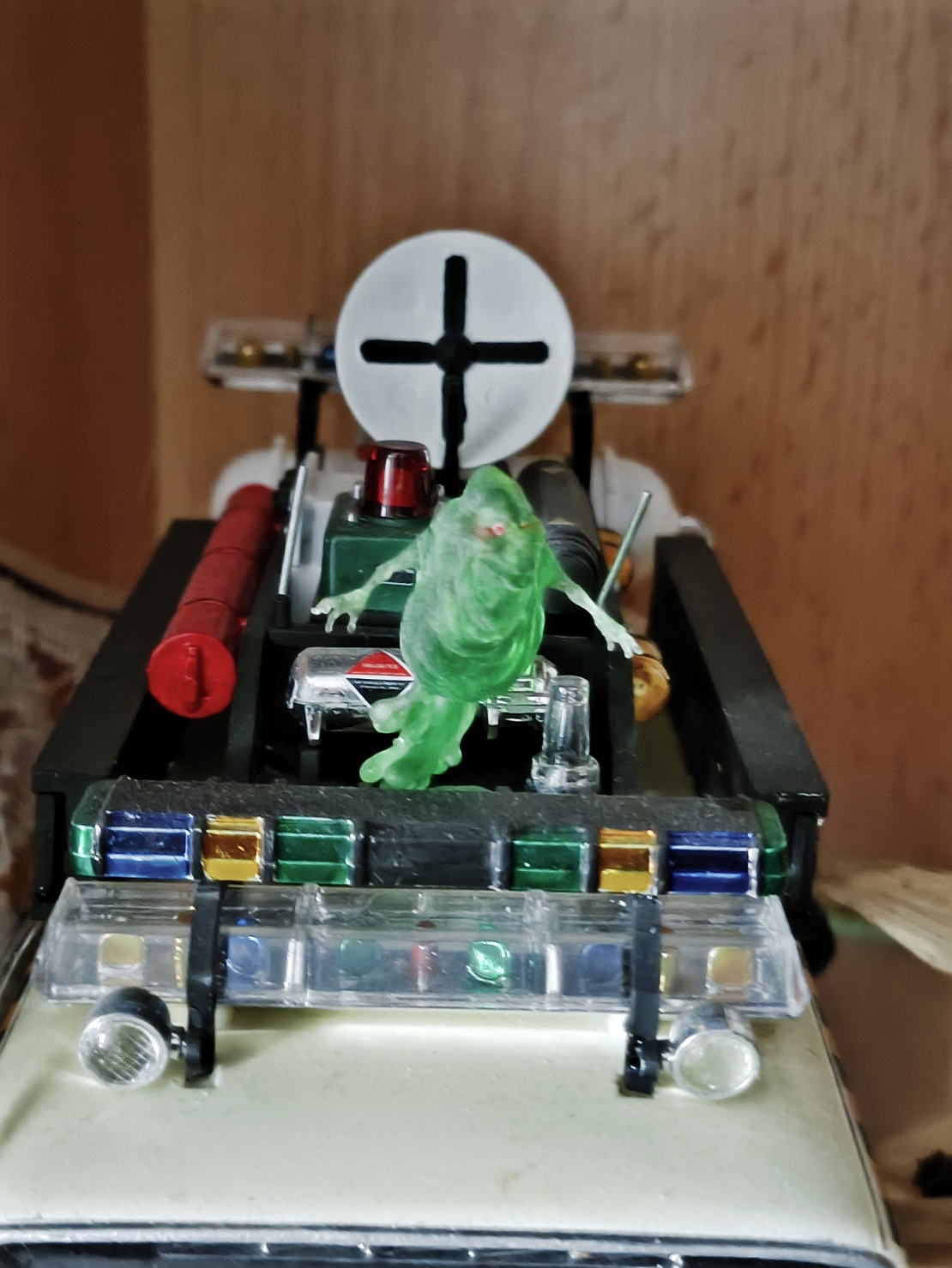 Bisher gedruckt hab ich Felgen, Sitze, Bremsscheiben- und Sattel. 30 cm Batman-Figur. Slimer in Transparent-grün für den Ecto 1.