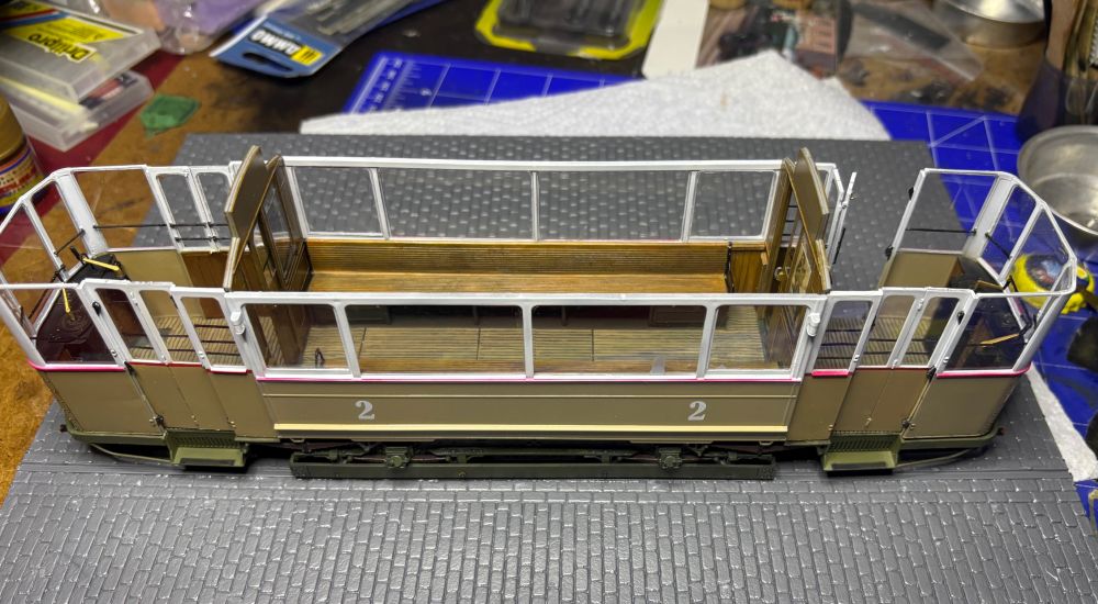 Nun habe ich beim "Zwischendach" weitergemacht. Alles wurde seidenmatt lackiert.