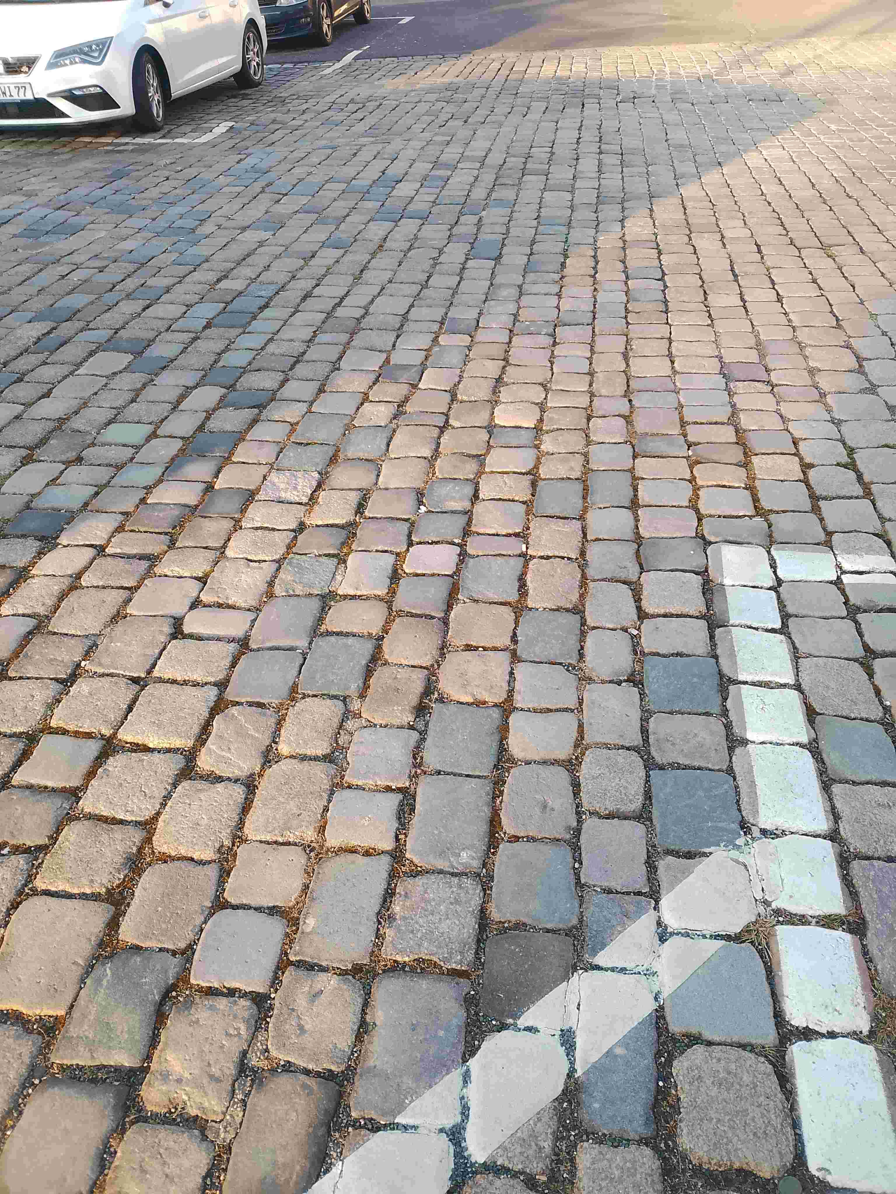 So sehr wie mir das Alles gefällt, wirklich sehr gefällt, aber ich halte die weit verbreitete Angewohnheit einzelne Steine aus Mauerwerk oder wie hier Pflaster sehr unterschiedlich zu bemalen für sachlich falsch.