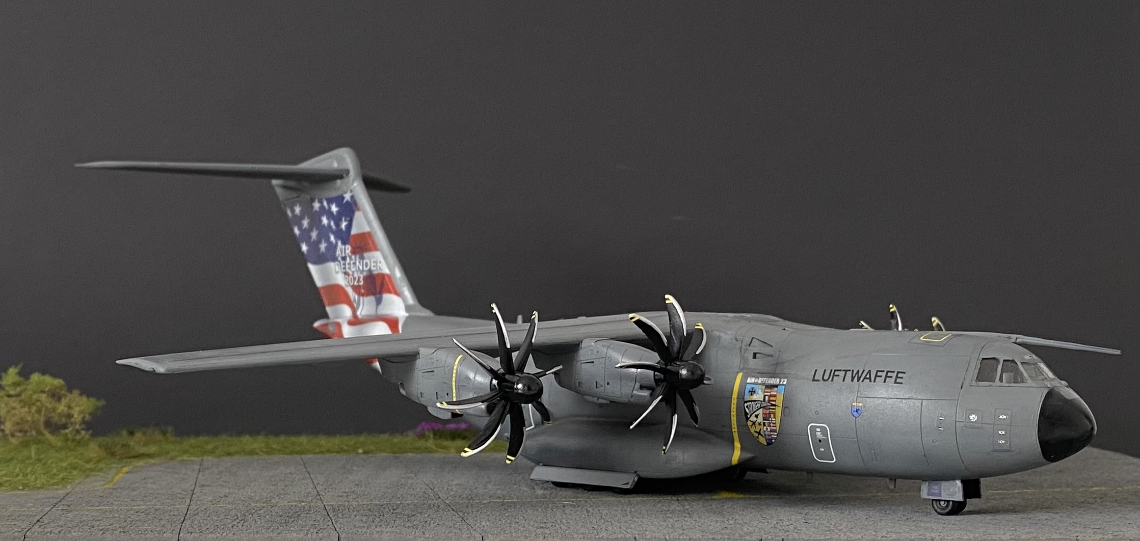 Also nun denn, hier präsentiere ich euch meinen Airbus A400M im Maßstab 1:144 von Revell. Ein rundum grandioser Bausatz, der sich problemlos o.o.B bauen lässt. Die Passgenauigkeit ist ausgezeichnet und der Detailgrad in diesem Maßstab, über das Maß hinaus zufriedenstellend. Besonders hervorheben möchte ich den exzellenten Decalbogen der es erlaubt, einen A400M im Sonderanstrich des 2023 stattgefundenen NATO Großmanövers „Air Defender“ darzustellen.