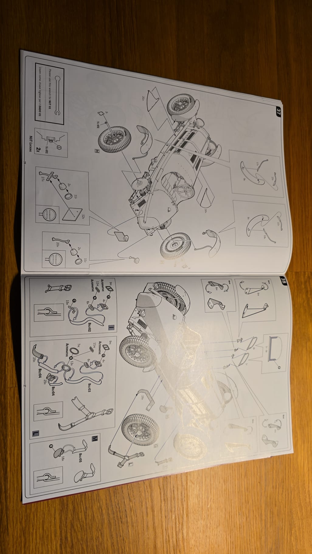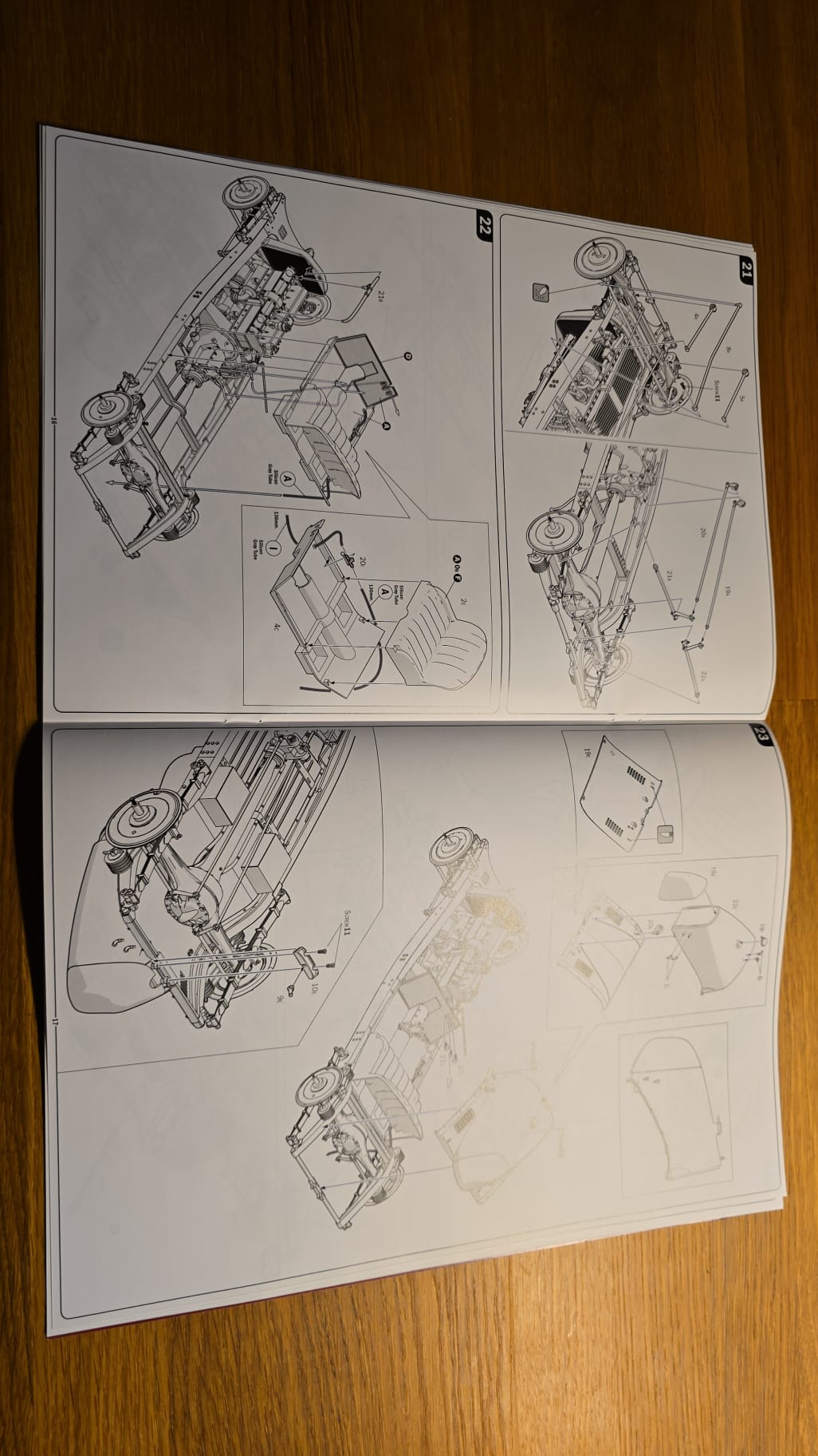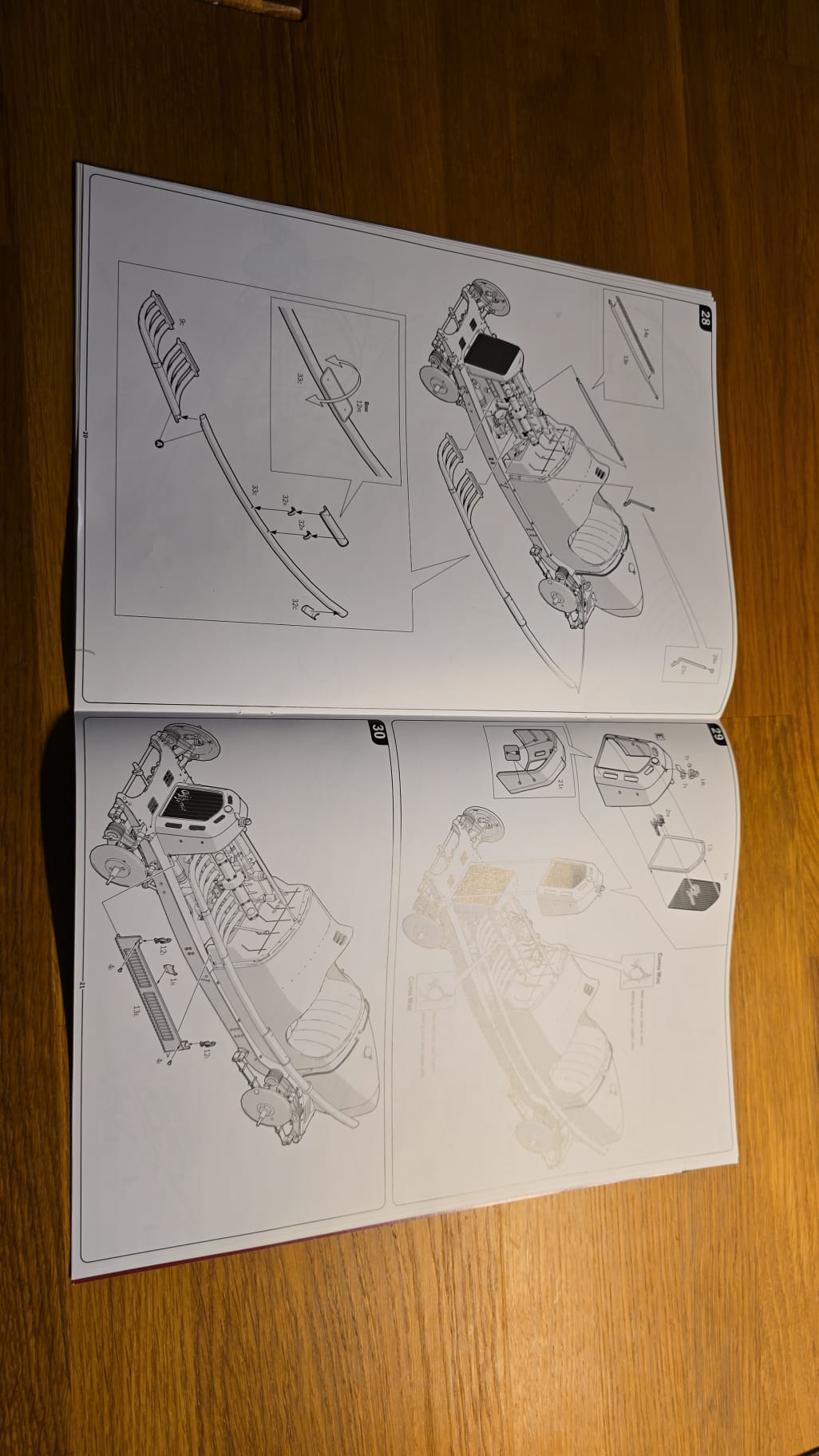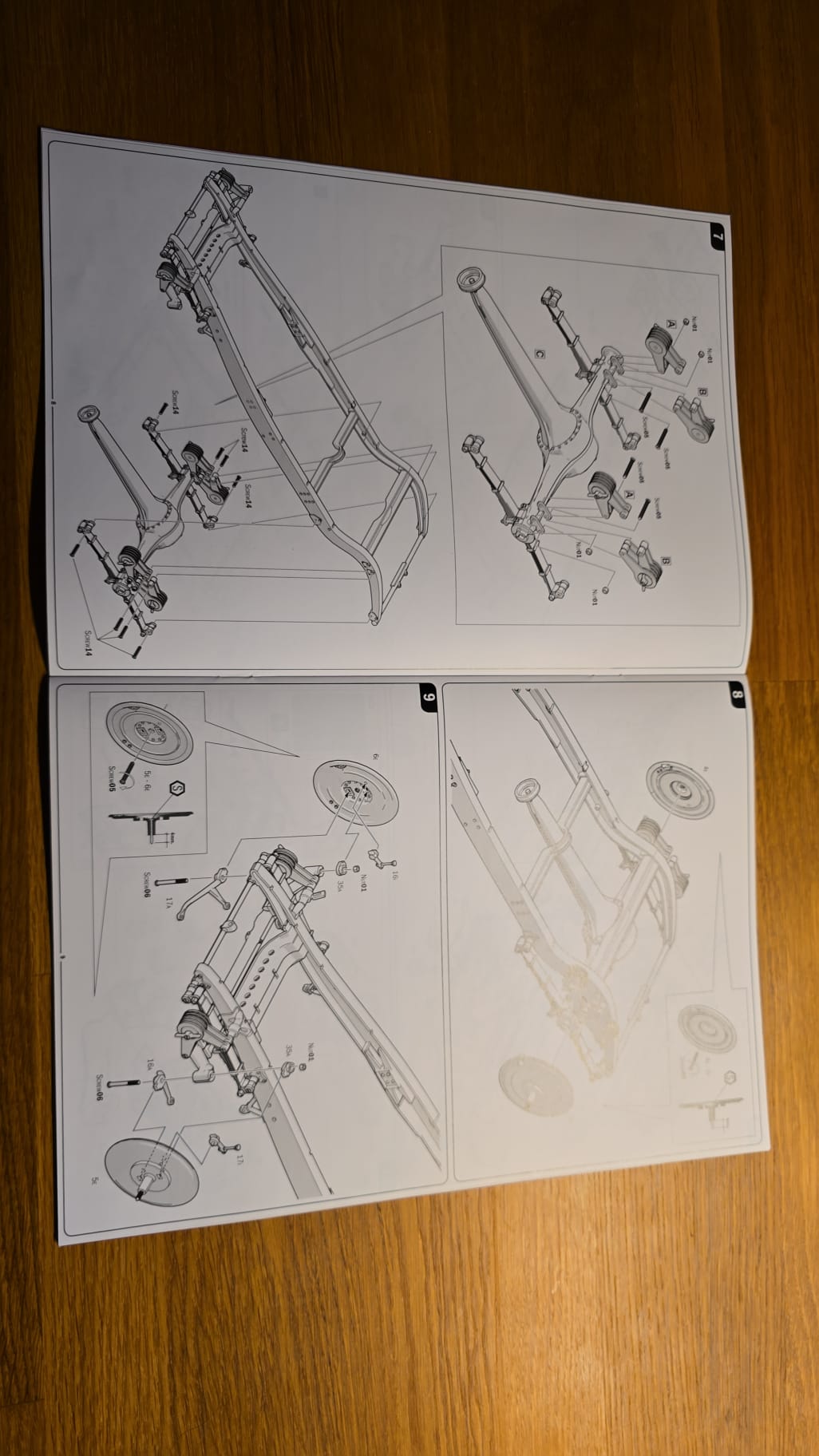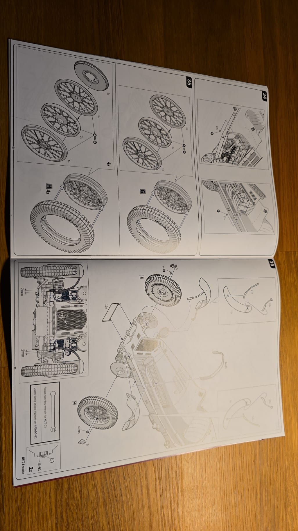 Der Karton ist groß und gut gefüllt. 3teilige Felgen, PE Teile, Kabeln und Schrauben. Die Spritzlinge sind in rot, schwarz, grau und Chrom gefärbt. Die Qualität ist gut, sauber gegossen. Auf den ersten Blick scheint es ein toller Bastelspass zu werden.
