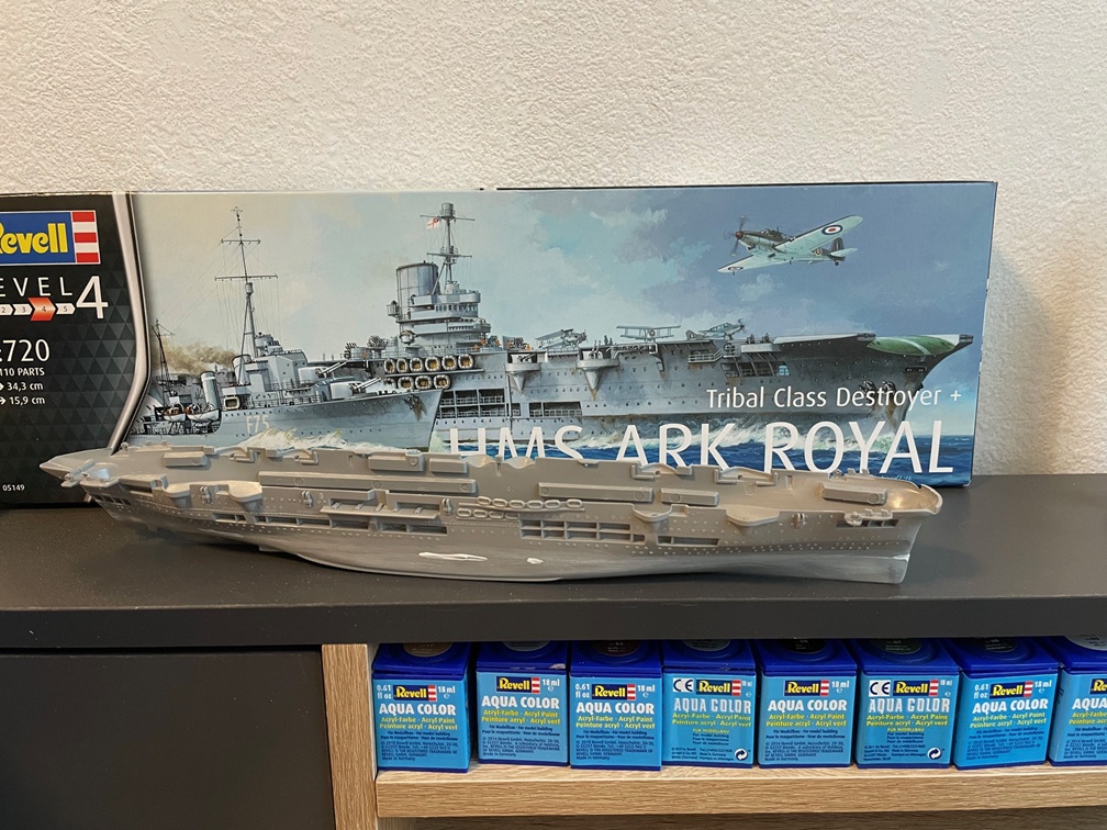- Revells HMS Ark Royal in 1/720. Einer der Bausätze aus meiner Kindheit, den ich mit heutigem Wissen/heutigen Fertigkeiten nochmal bauen wollte. Hat anscheinend den gleichen Freundeskreis wie die Boomerang