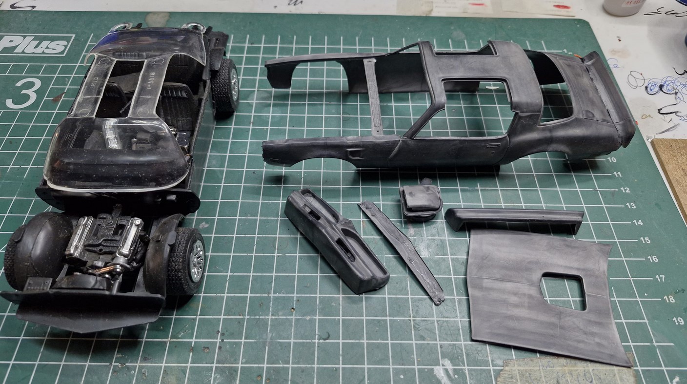Die Karosserie ist zumindest schon lackiert und wartet auf den Klarlack (gerade kein Bild an der Hand).