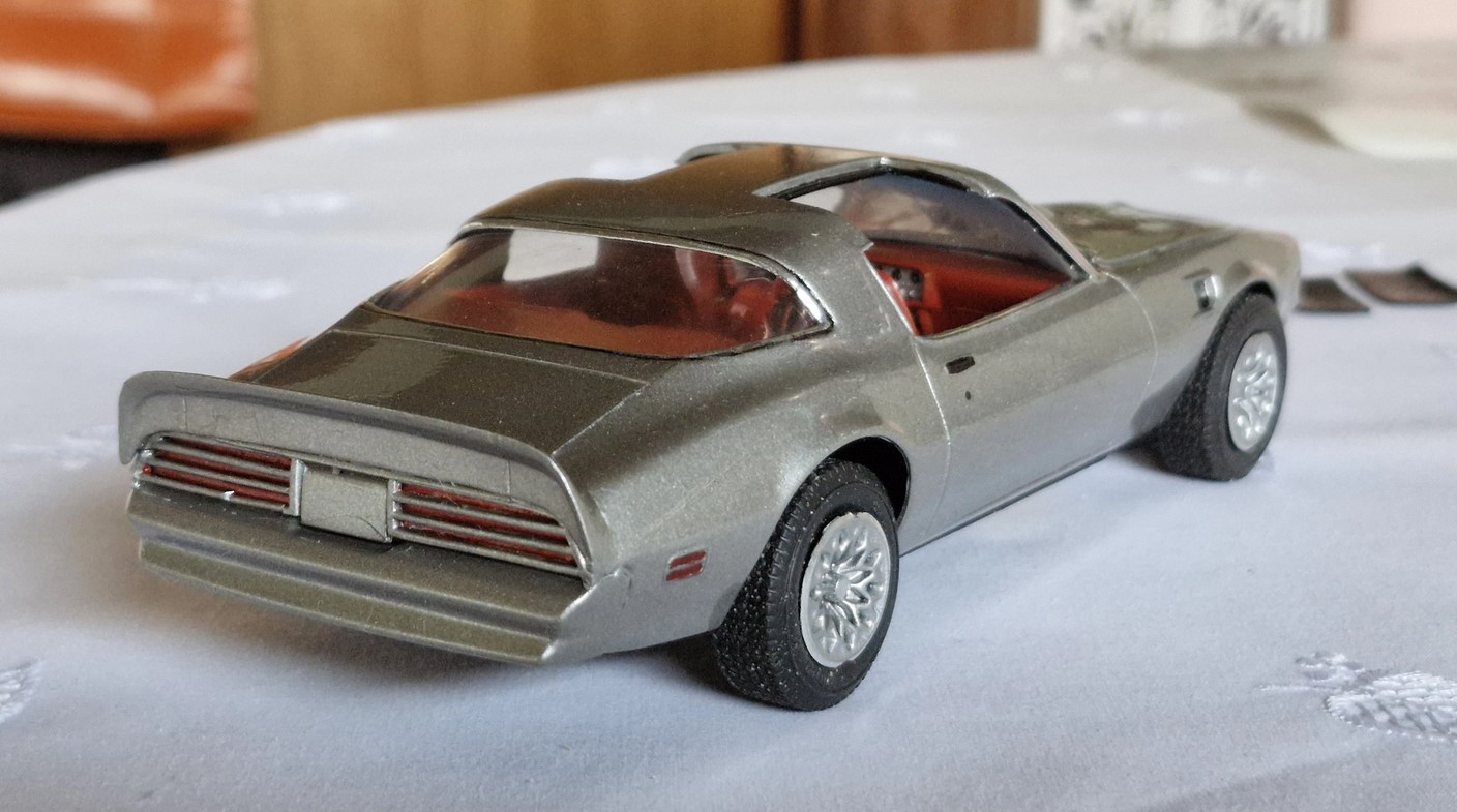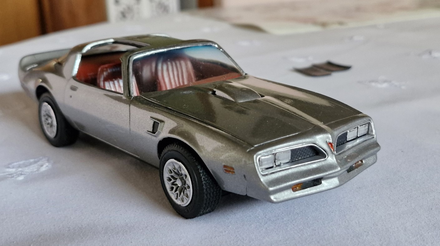 Weiter habe ich mit meinem Enkel (6) einen 1977 Trans Am restauriert. Bekommen habe ich den von meinem Bruder aus einem Beifang. Er war mit dem Pinsel bemalt. Mit Dowanol entlackt, abgebrochene Teile an der Karosserie ergänzt, gespachtelt und verschliffen, konnte ich an die Lackierung gehen. Von Anfang an, hat mich mein Enkel während der Osterferien begleitet. Die Farben innen wie außen hat er so ausgesucht. Exzelent