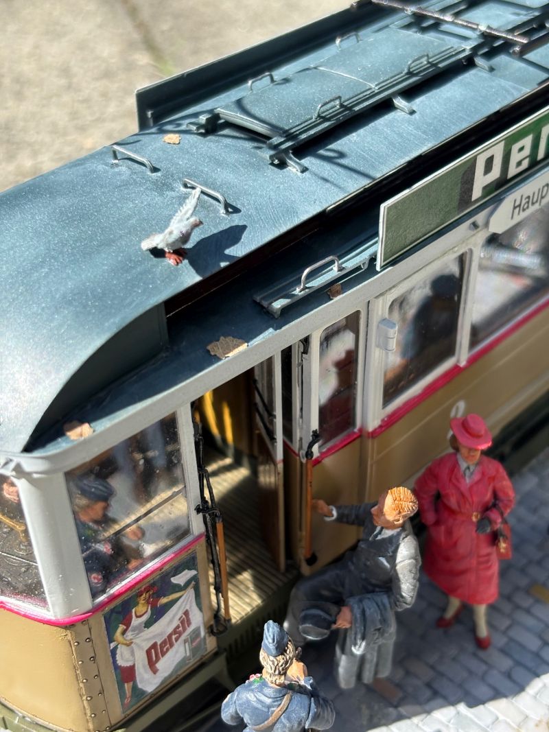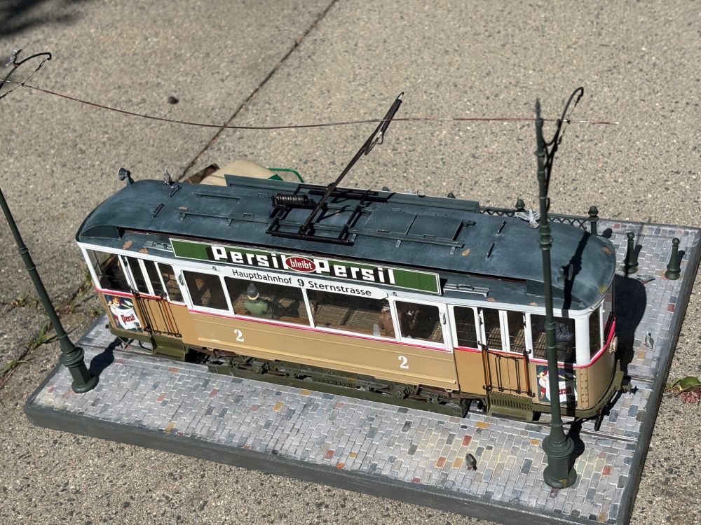 Von Berufswegen muss ich aber leider doch eine Kleinigkeit anmerken. Ich glaube nicht, dass der Fahrdraht damals so durchgehangen hat, wie es auf deinen Bildern so wirkt. Außerdem müsste der höchste Punkte dort sein, wo der Stromabnehmer den Fahrdraht berühert.