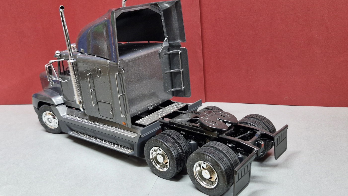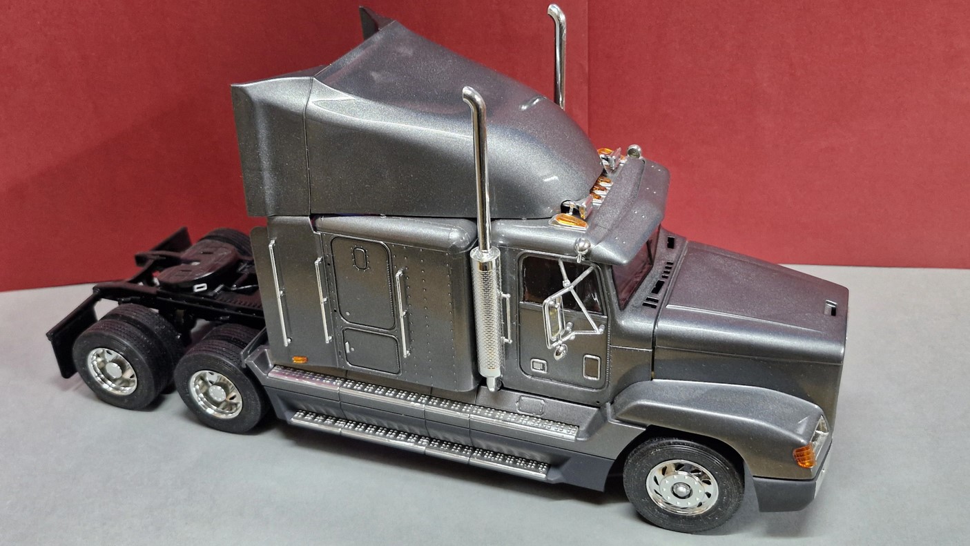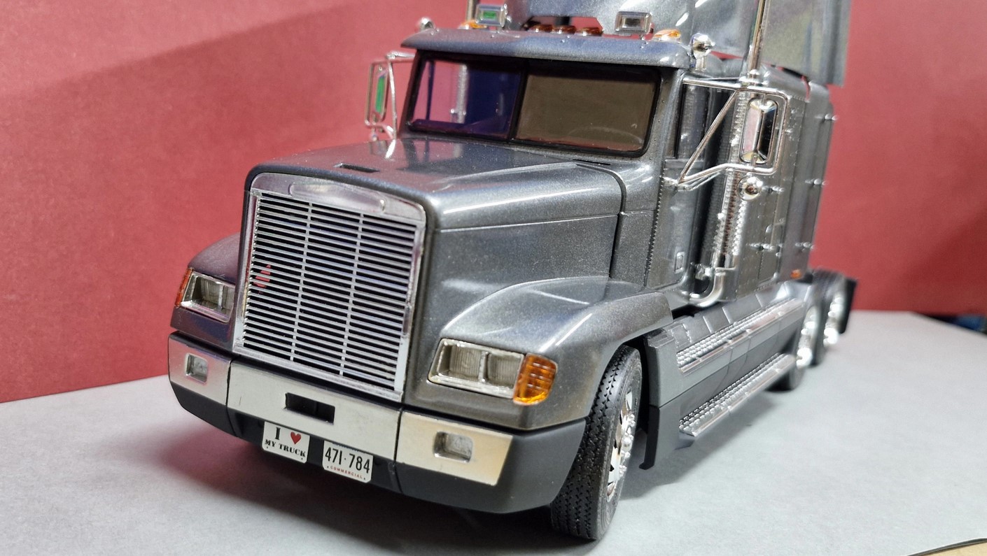 1993 Dodge Stealth R/T Turbo; muss schreiben: für einen AMT/ERTL-Bausatz ist der Spitze. Alles passte ohne Probleme und die Details (vor allem Motorraum mit Bi-Turbo) sind hervorragend dargestellt. Manche kennen das Gerät wahrscheinlich als Mitsubishi 3000GT. Identisch bis auf den Heckspoiler. Habe ich den Freightliner FL 120 schon erwähnt? Italeri steht drauf. Was hat mich dieser Truck geärgert. Rahmen, Vorderachse, Motorhaube... Irgendwie war da alles unpassend. Die Vorderachse war schief trotz Markierungen, die Haube klemmte an allen Ecken und Enden, Die Frontstoßstange schloss nicht bündig ab etc etc. Schlimm. Ich zweifelte schon daran, ob ich Bauteile verwechselte weil da so viel am Fahrgestell nicht richtig passte. Am Ende steht er gut da. Mag ihn trotzdem. War zudem ein "Pflichtbau" meines Modellbaustammtisch für unser jährliches Wichteln. Wie der Dodge Charger.