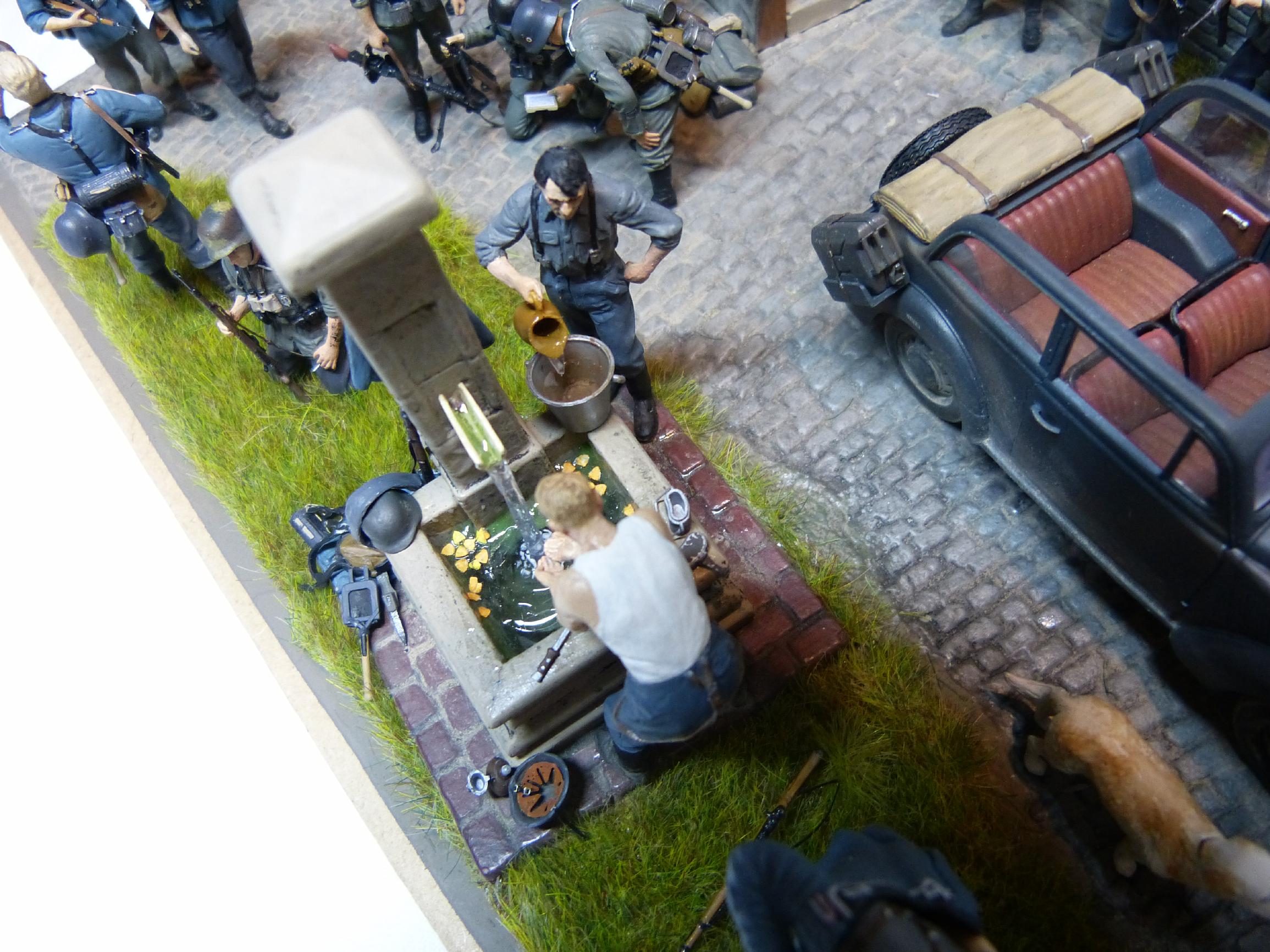 Das Brunnenwasser ist aus UV-Harz, die Uniformjacken waren im Bausatz 6791 enthalten.