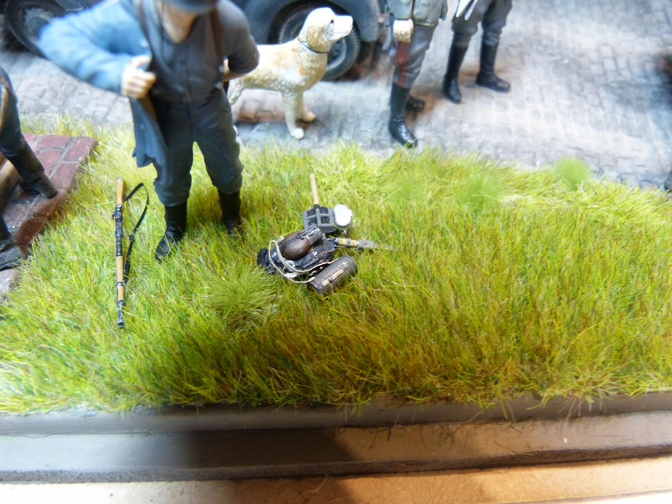 Es ist mit 24 Figuren und 2 Fahrzeugen zugegebenermaßen schon fast ein „Wimmelbild“ geworden. Aber ich mag Dioramen, auf denen viel los ist.