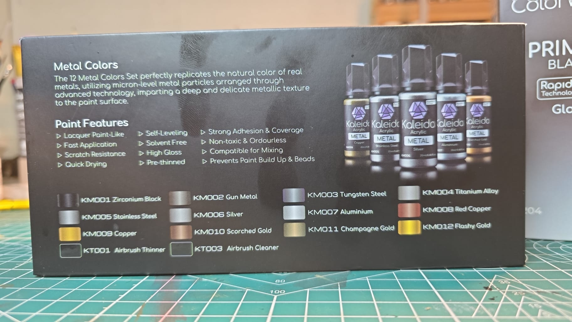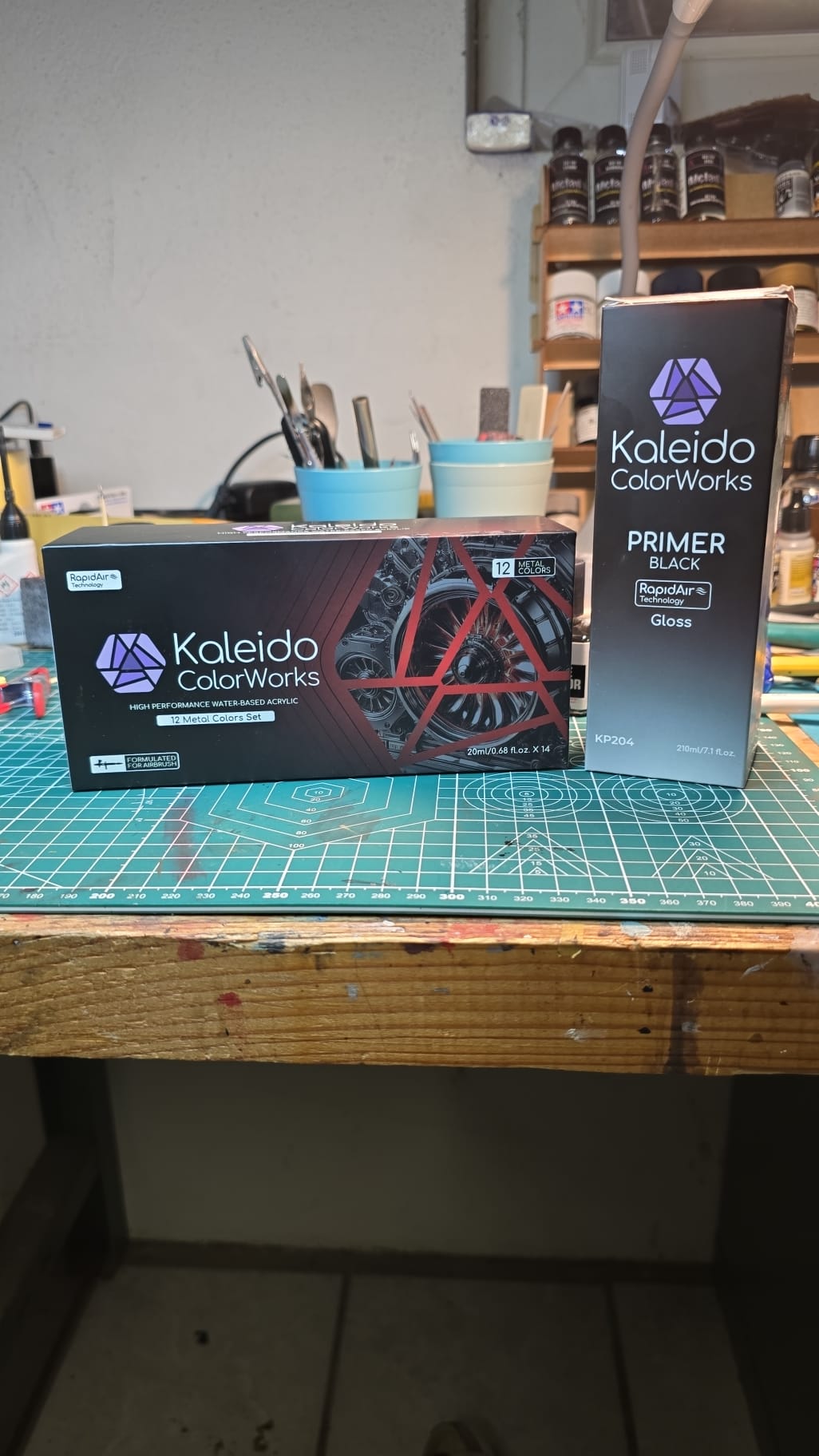 Ich habe mir ein Set Metal Colors von Kaleido bestellt, dazu den black glossy primer. Ich bin sehr gespannt, wie es dann aussieht.....