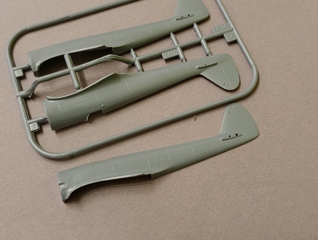 Zunächst musste man sich entscheiden ob man die Variante Ko oder Otsu baut. Der Unterschied liegt im verwendeten Auspuffsystem. Die Variante Otsu ist dabei die frühere Variante mit dem Auspuff unterhalb des Kühlergrills. Hier bei sind die Motoren und Rumpfbauteile unterschiedlich, daher auch der Unterschied.