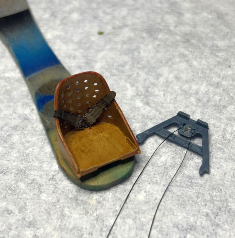 Abschließend habe ich die Cockpitrückwand und die Kopfstütze lackier und eingebaut.