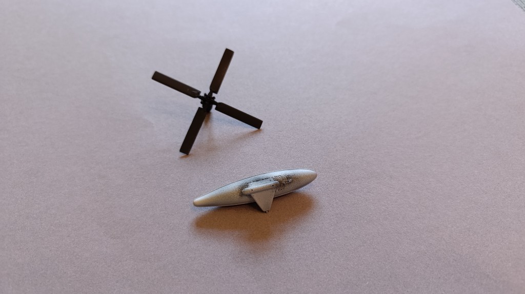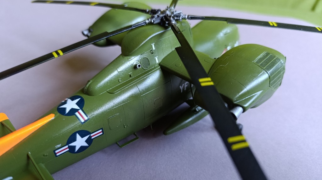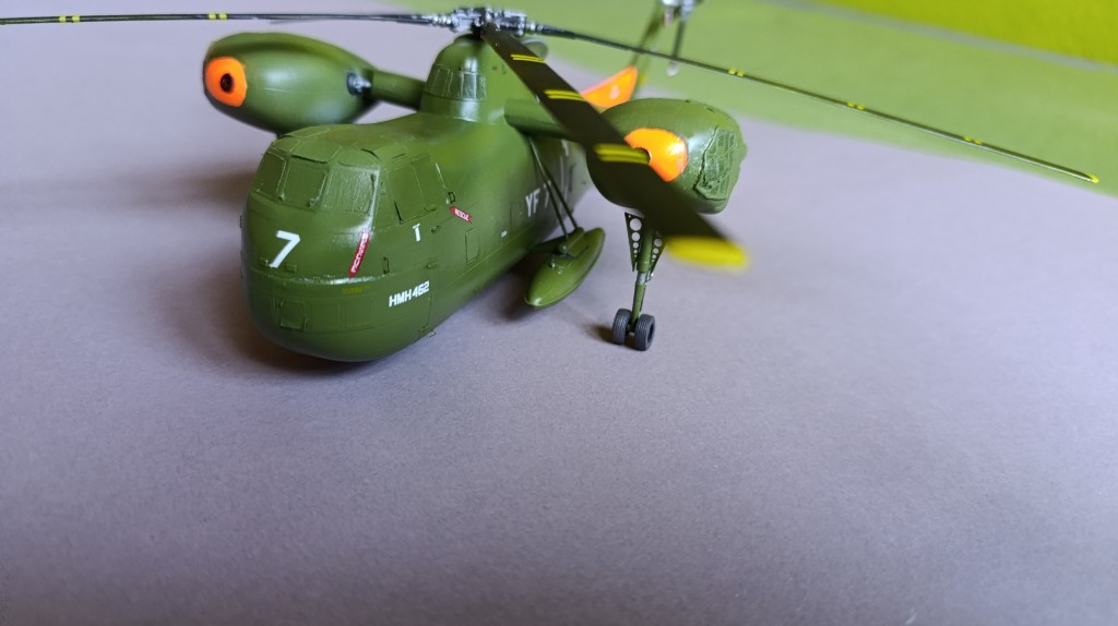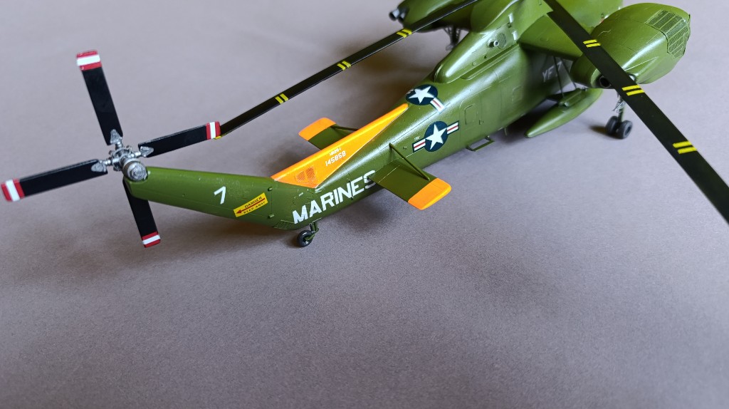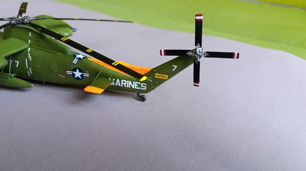 Der Heckrotor ist ebenfalls fertig lackiert. Aber ich glaube hier muss ich noch etwas nacharbeiten. Mal sehen was das Walkaround sagt.