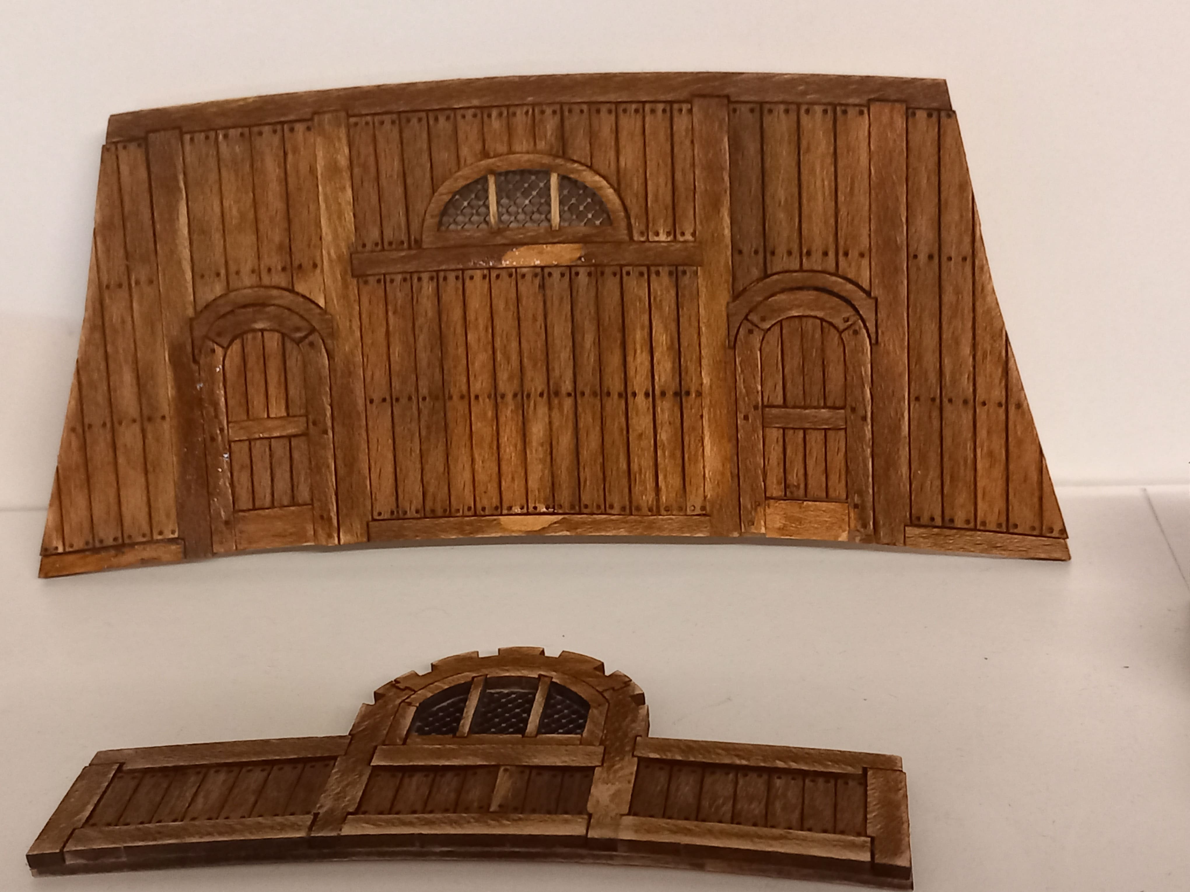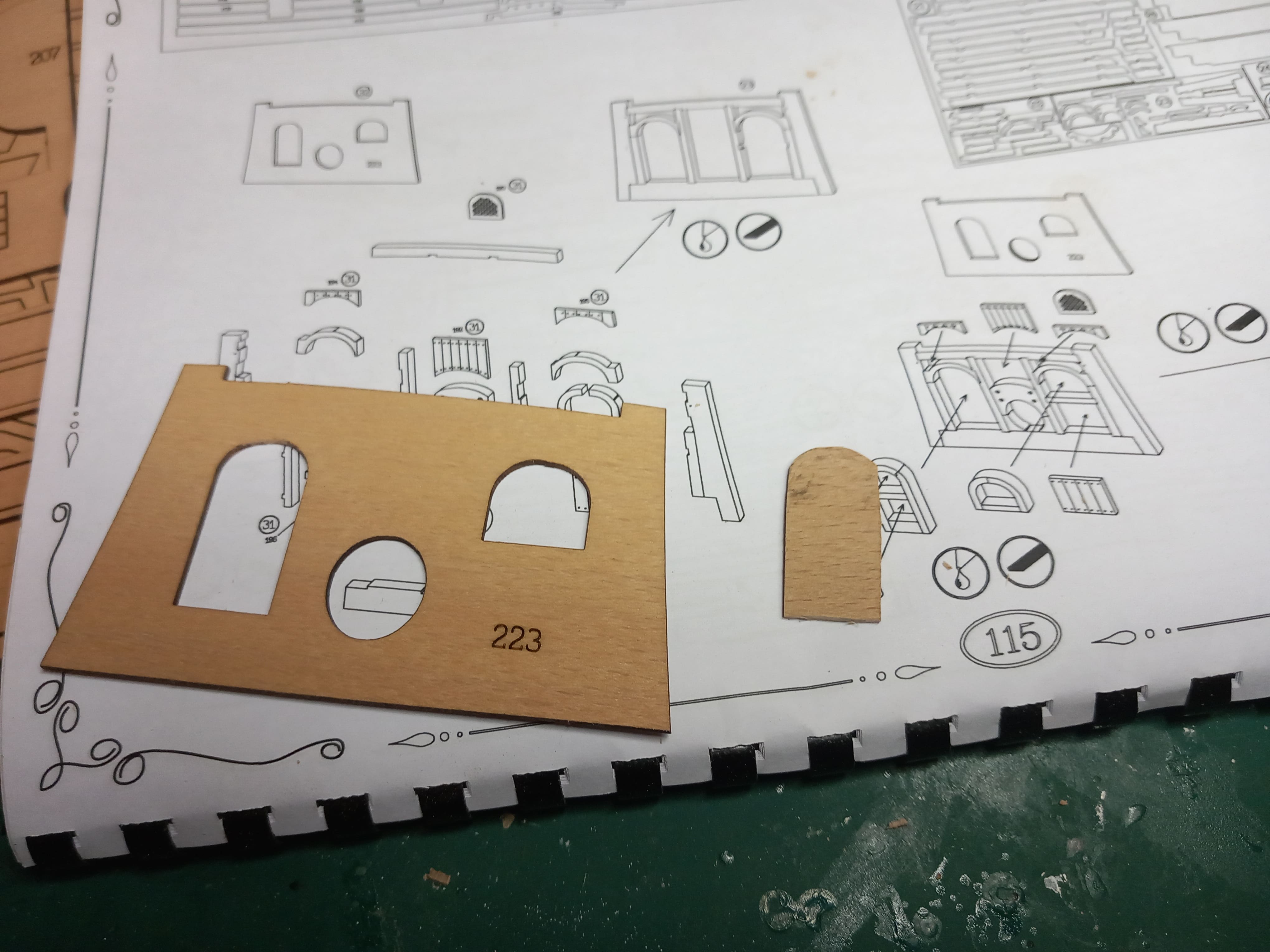 Moin. Die hintere Fensterfront wurde angepasst und ein Bugelement wurde fertiggestellt. Außerdem habe ich die ersten Teile bemalt. Als Farbe habe ich Eiche gewählt. Gruß Ingo