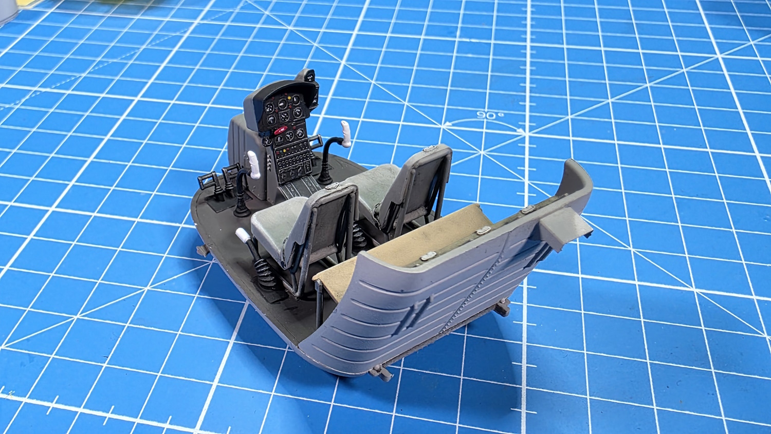 Als Nächstes werden die Sitze noch bearbeitet, damit sie nicht so flach wirken. Danach kommen etwas Wash und Pigmente auf den Boden, und anschließend wird das „Aquarium“ zusammengesetzt.