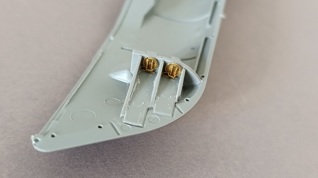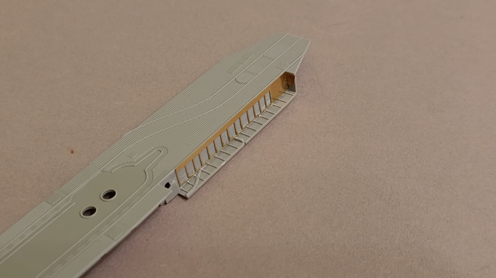 Das selbe passierte auf der anderen Seite. Da ich das PE-Teil für das Deck nicht verwenden werde, weil es kein wesentlich Mehrwert hat,habe ich es auf den normalen Bausatzdeck angebracht.