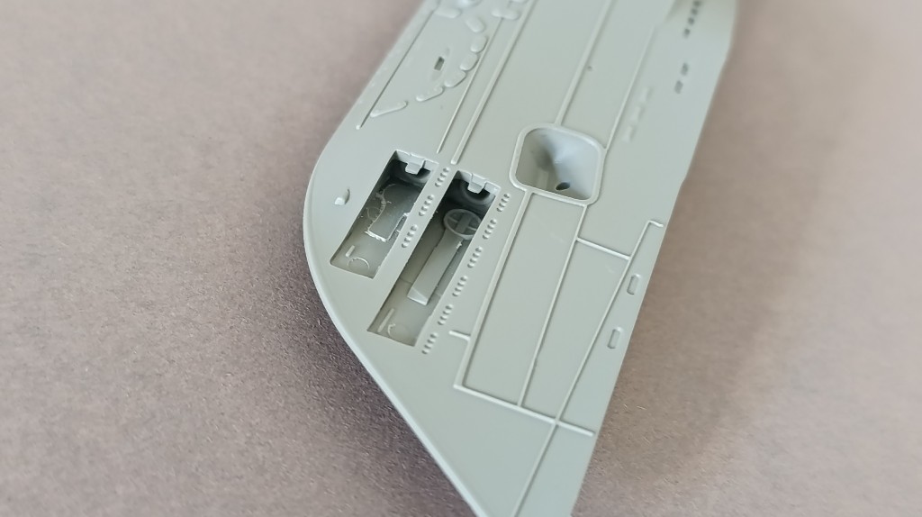 Die Bucht für den Schnorchel habe ich auch schon vorbereitet, hier wurden die Rippen entfernt und später durch PE-Teile ersetzt