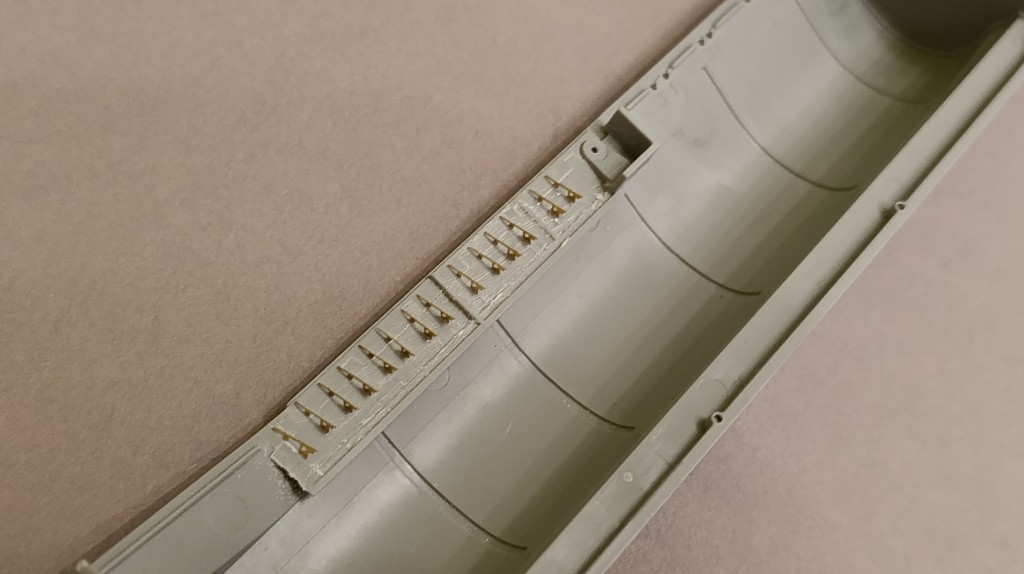 So die ersten Bauschritte sind vollzogen. Die Torpedorohre sind verbaut und die Deckel dank dem PE-Set auch schön detailliert. Ich werde eine Seite geöffnet die andere geschlossen darstellen.