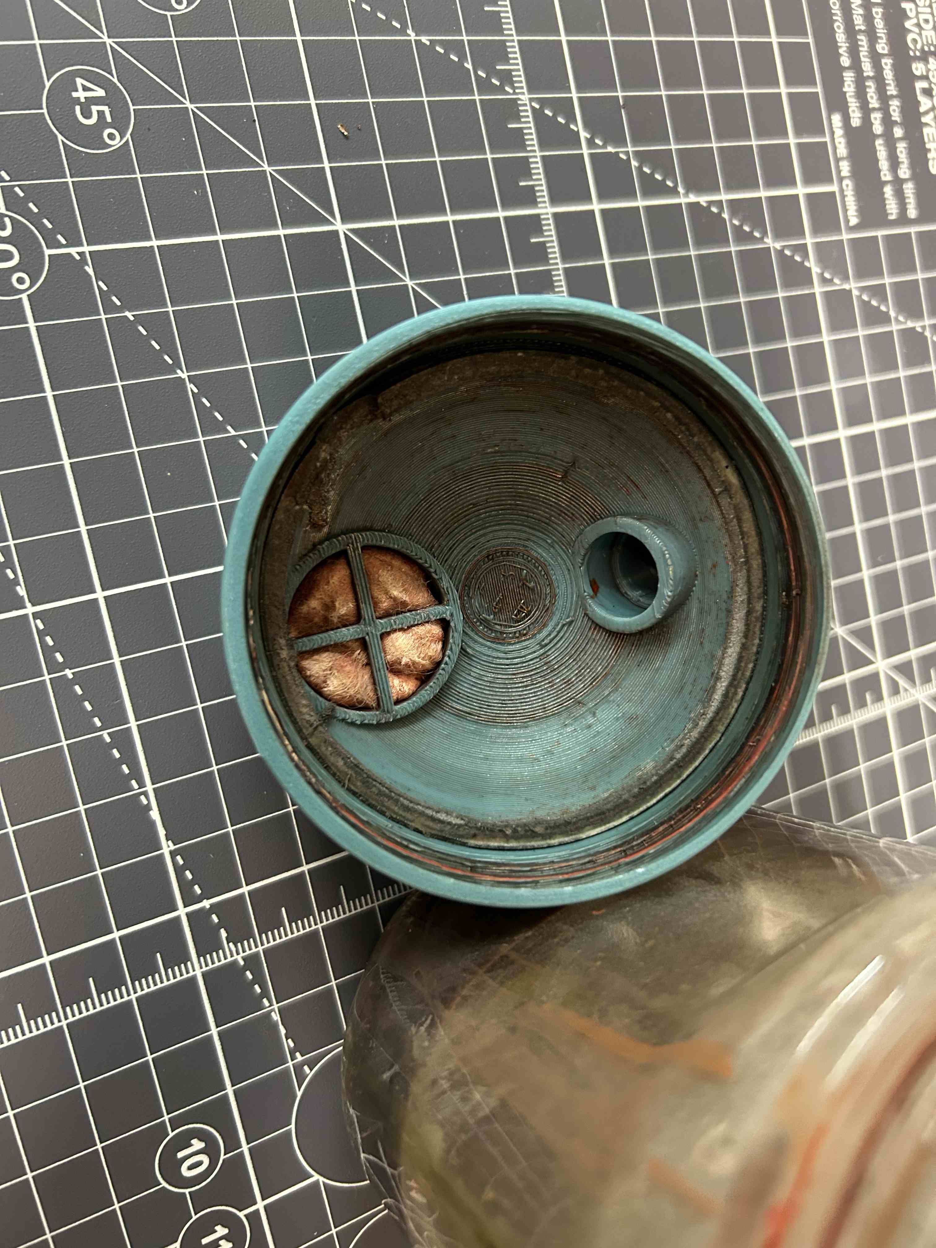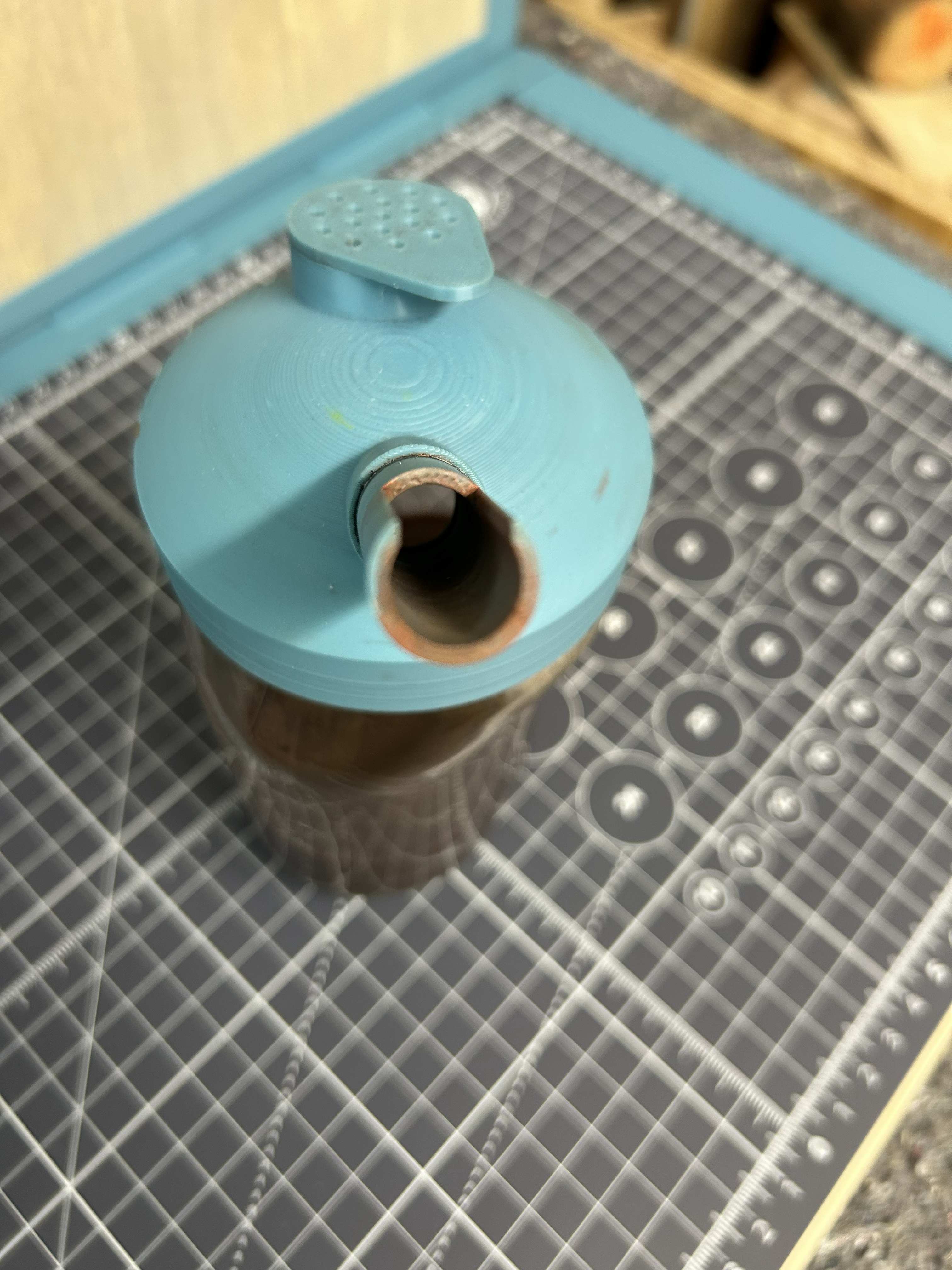 Leider hat der gedruckte Deckel aus der Vorlage (und auch viele andere Dateien) nicht auf die 450g Nutella Gläser gepasst, die wir so haben. Dann hat mir auch nicht gefallen, dass ich nicht die Ersatzfilter für meinen Sparmax Clean Pot reinbekommen haben und schließlich wollte ich eine Halterung für ein Saug- und ein Fließsystem haben.