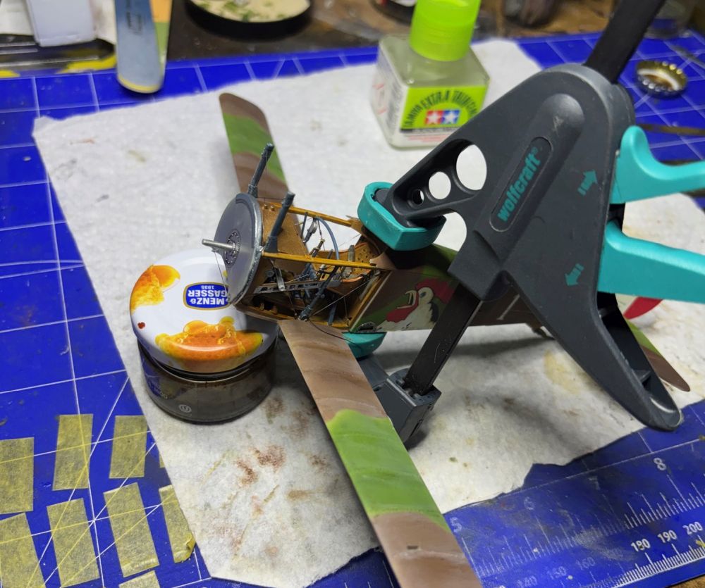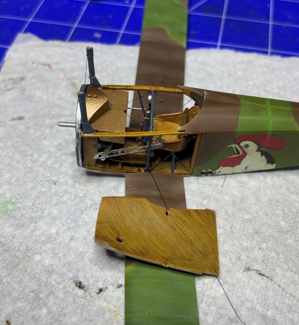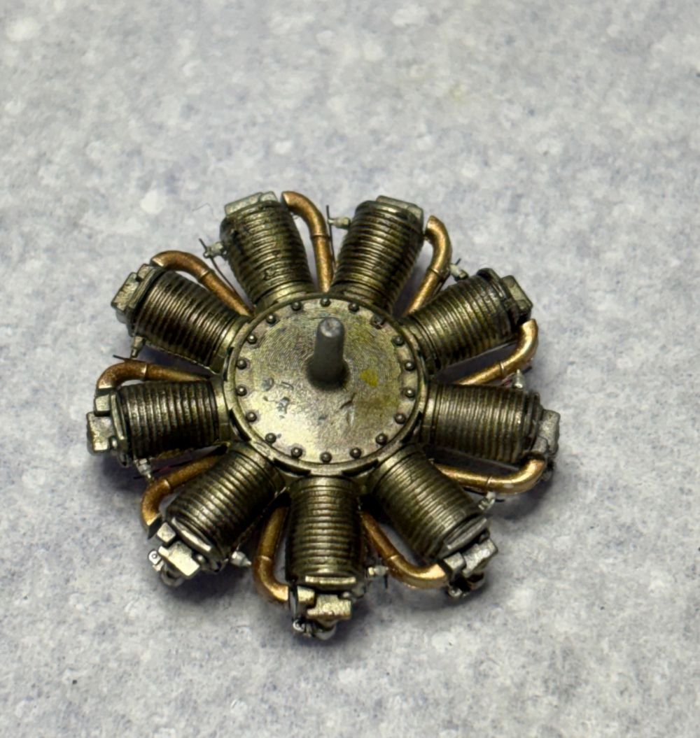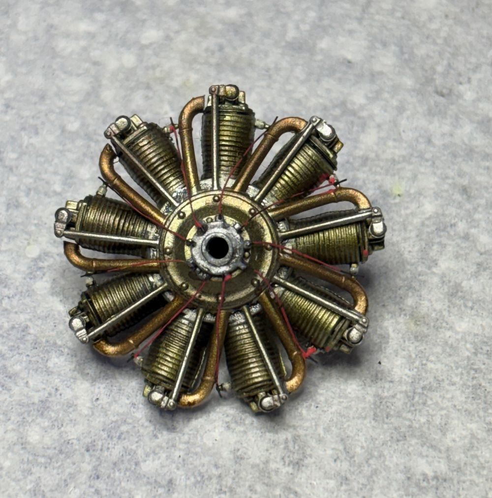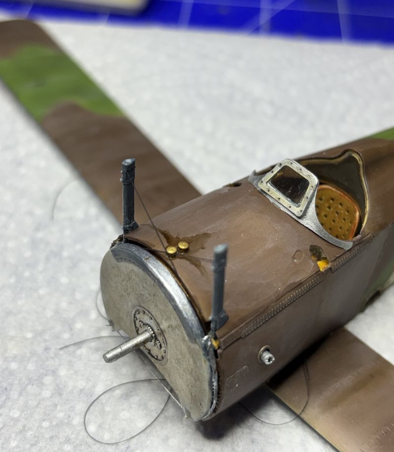 Nach der Trocknung habe ich die Unterseite direkt mit Öl verdreckt. Schließlich haben die Rhone Umlaufmotoren ordentlich rumgesaut.