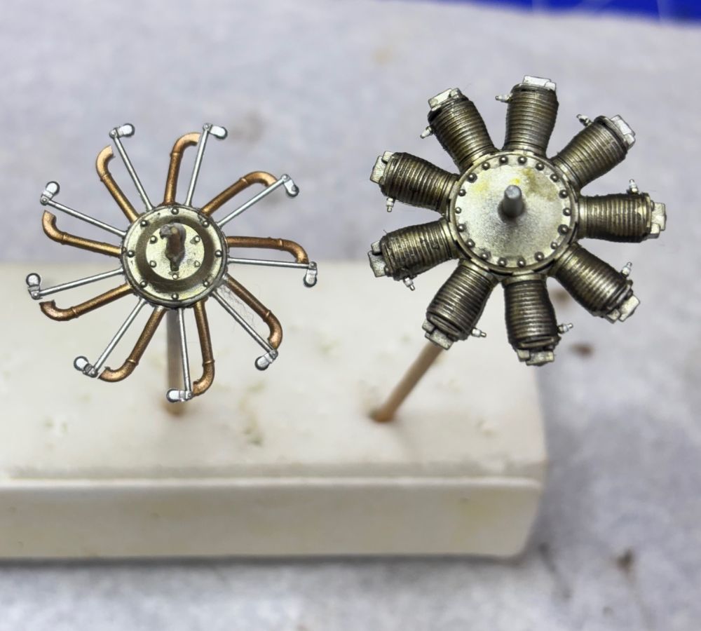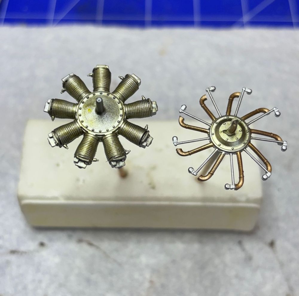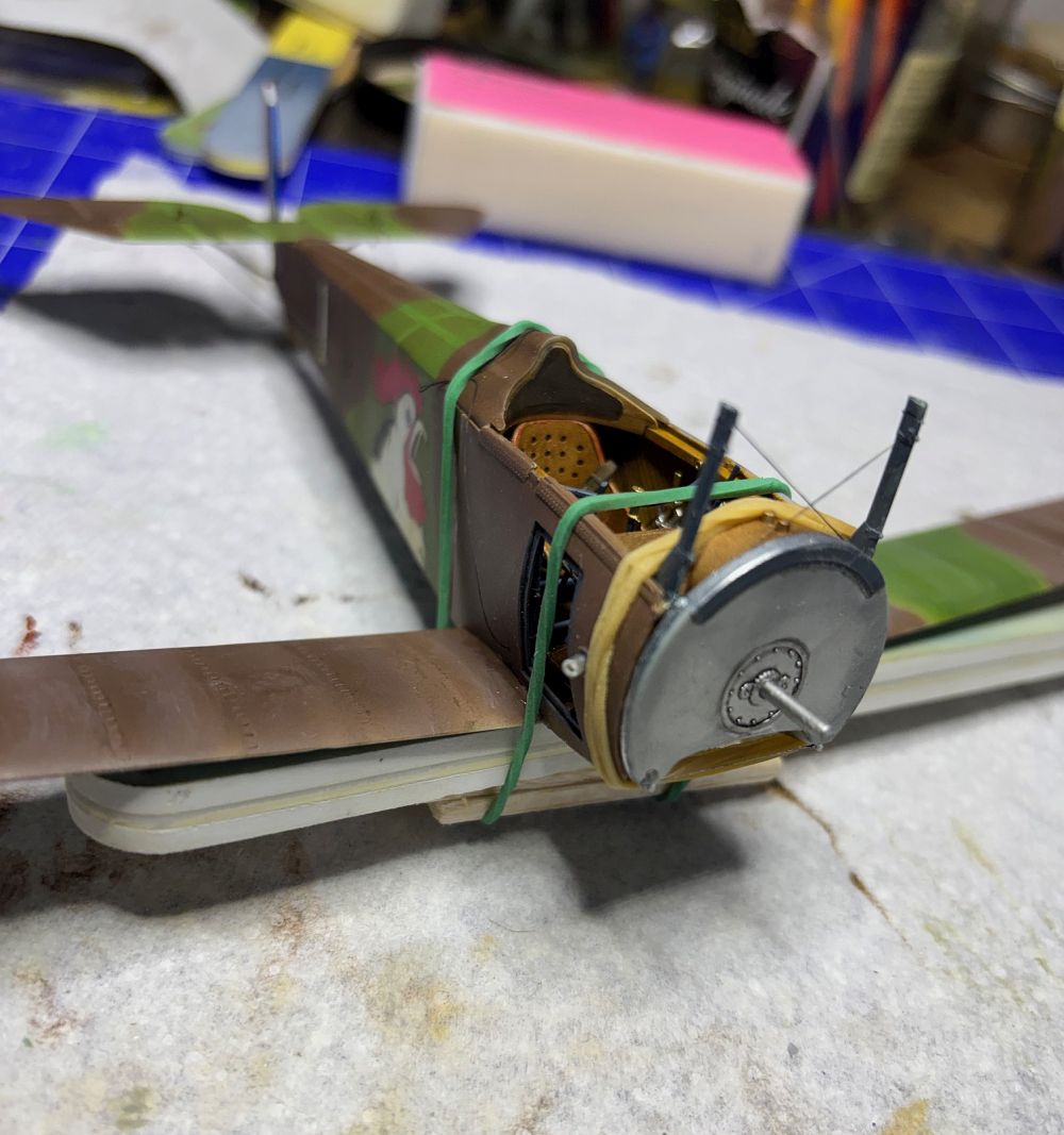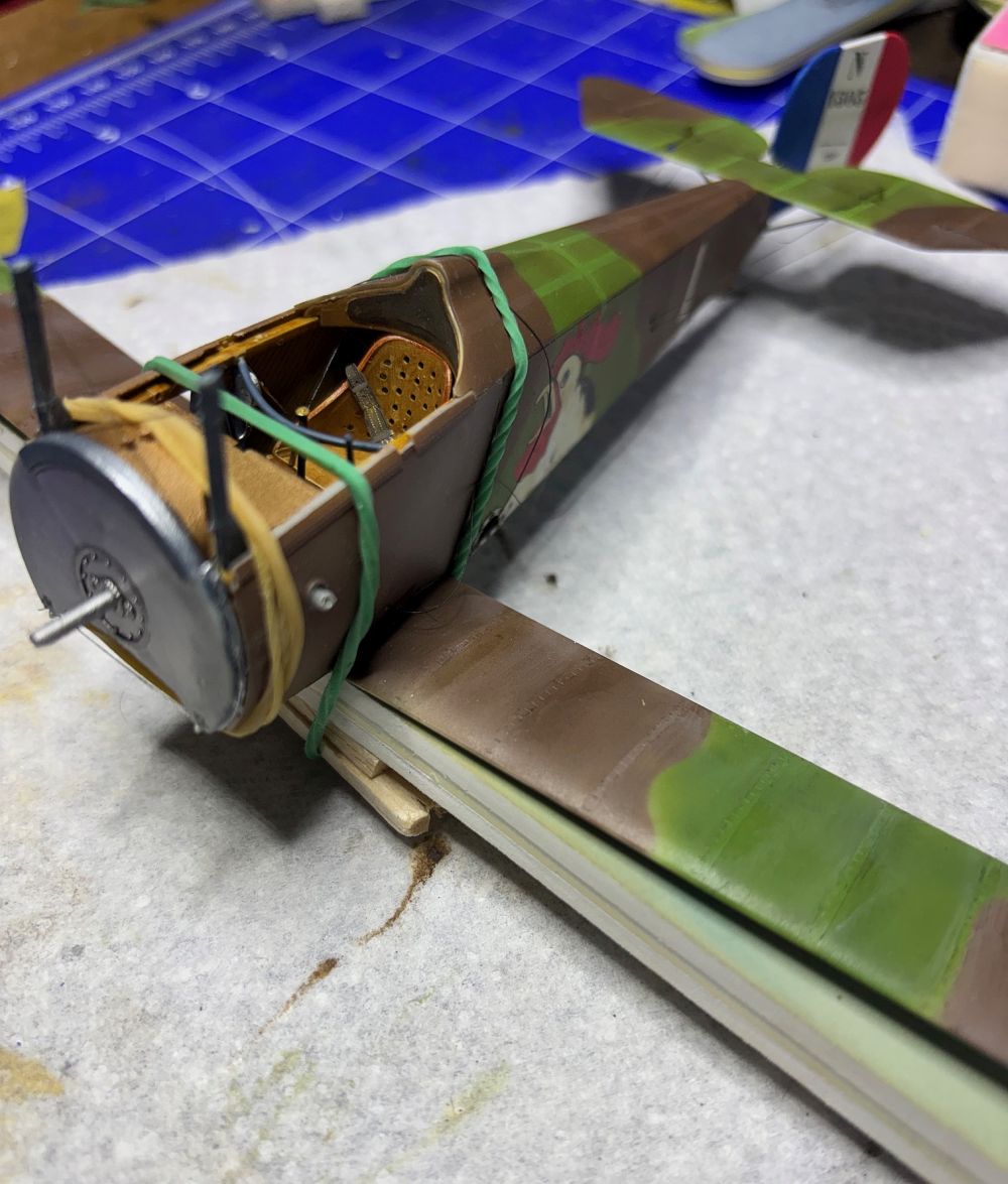 Nach der Trocknung habe ich die Unterseite direkt mit Öl verdreckt. Schließlich haben die Rhone Umlaufmotoren ordentlich rumgesaut.