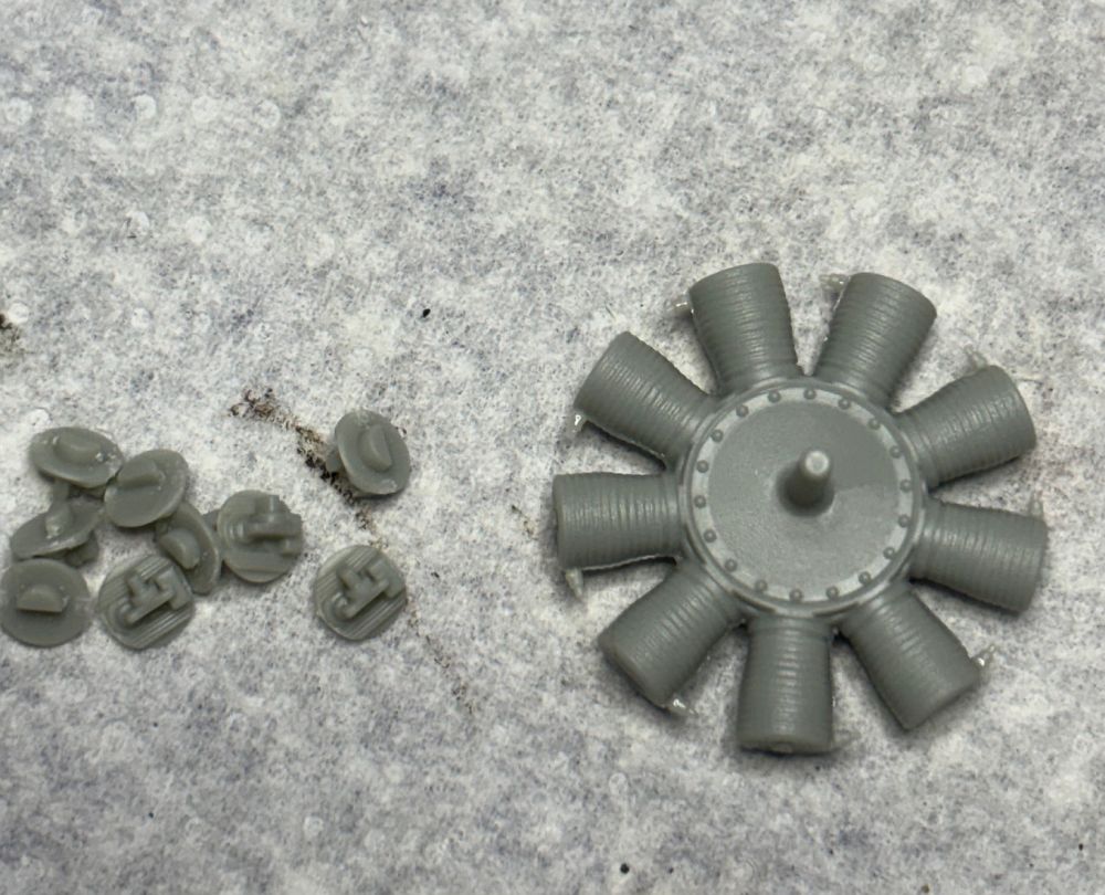 Nach kleben und versäubern der Zylinderhälften und Köpfe wurde mit Mr. Surfacer 1500 grundiert.