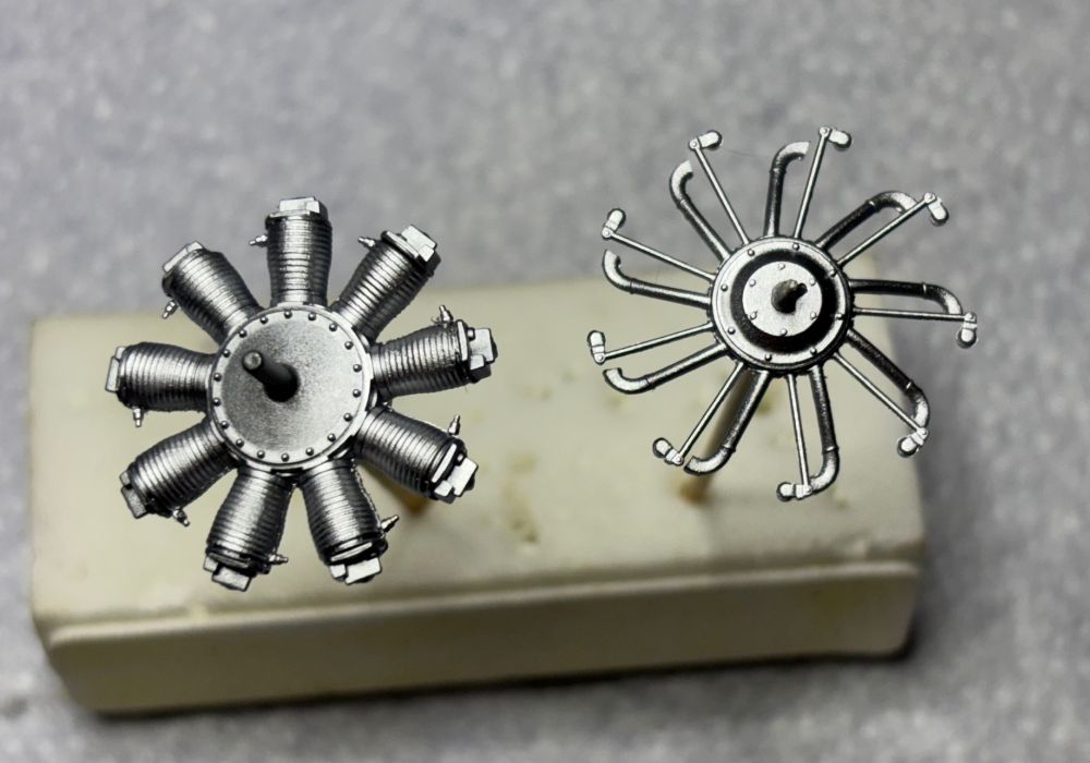 Die Trocknungszeit habe ich für die Cowling genutzt. Sie wurde auf schwarzer Grundierung in Alu gesprüht und dann auf der Innenseite mit Ölfarbe Grease ordentlich verdreckt. Die Außenseite wird als Kontrast zum restlichen Flieger wenig gealtert.