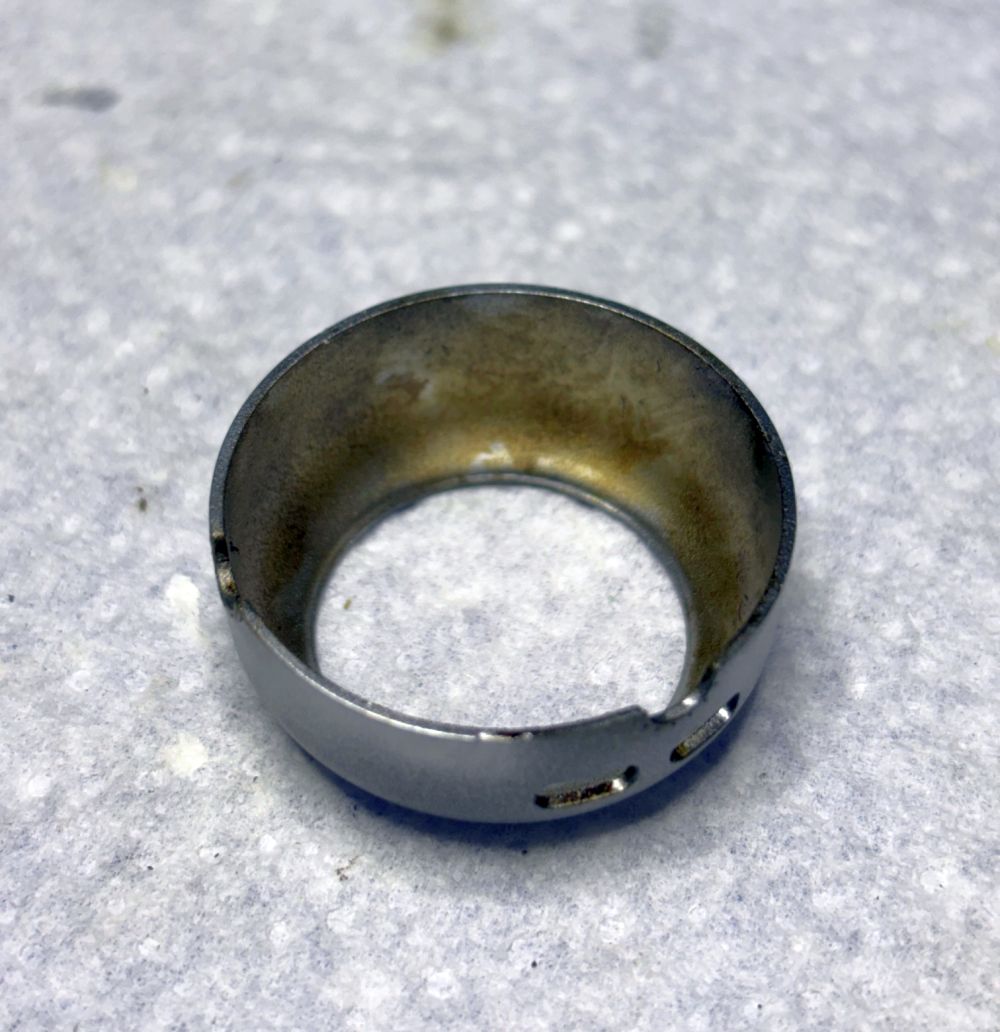 Die bereits einseitig befestigten elastischen Garnstücke wurden nun wieder durch eine kleine Messinghülse geführt.