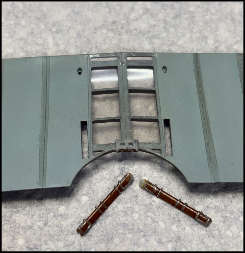 Auch die mittleren Streben habe ich fertig lackiert. Diese wollten aber nicht so wirklich in die vorgesehenen Löcher passen.