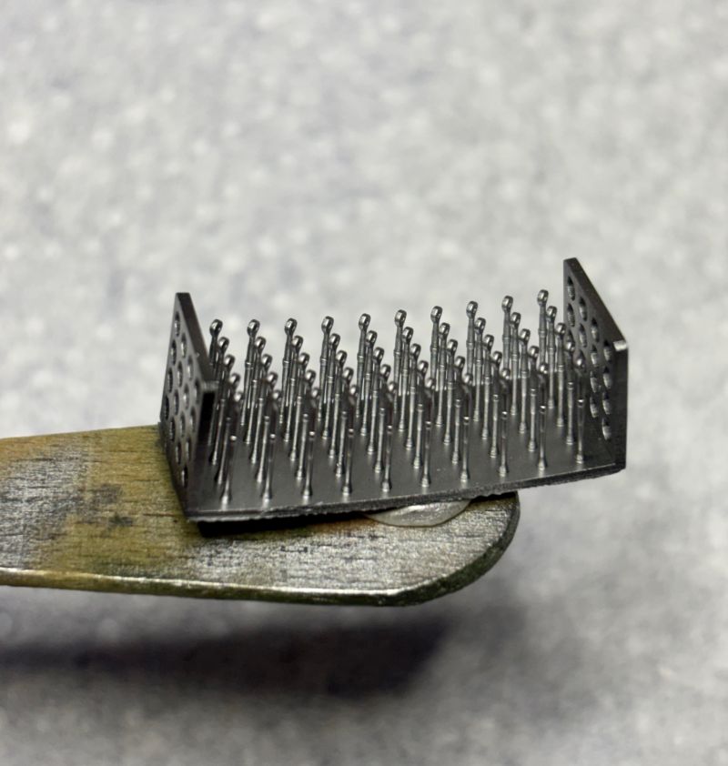 Die Ösen aus dem Zubehör von Gaspatch Modells hatte ich bereits schwarz grundiert und mit glänzendem Alu gespüht.