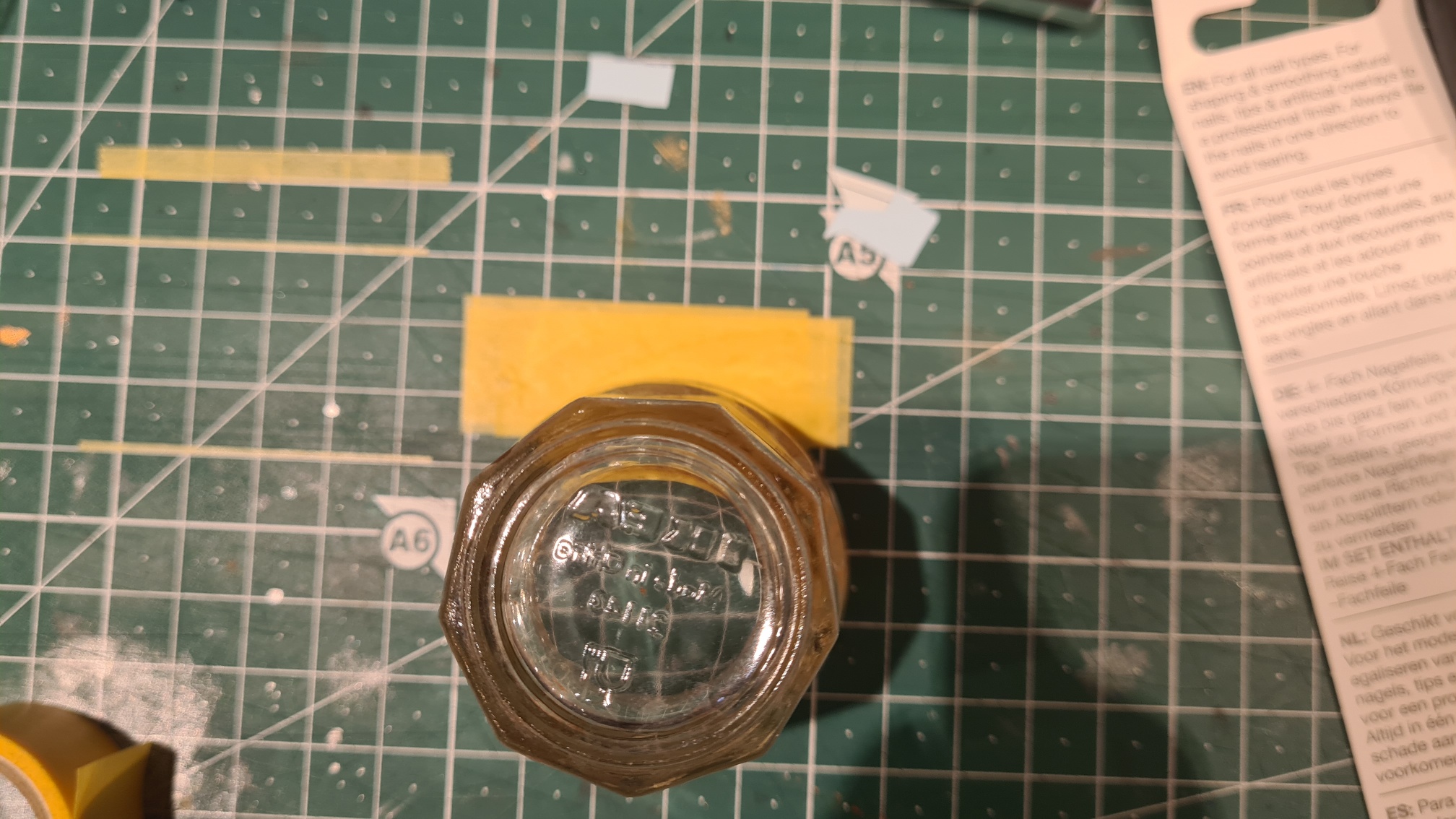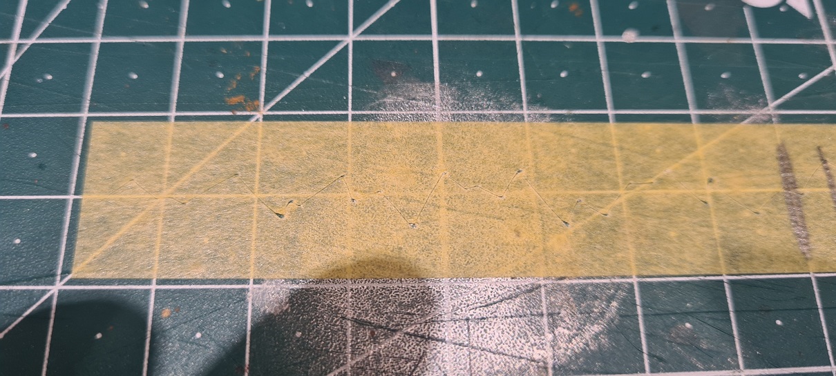 Maskiertape in dünne Streifen geschnitten und dann recht wilkürlich in einer Endloslinie aufgeklebt: