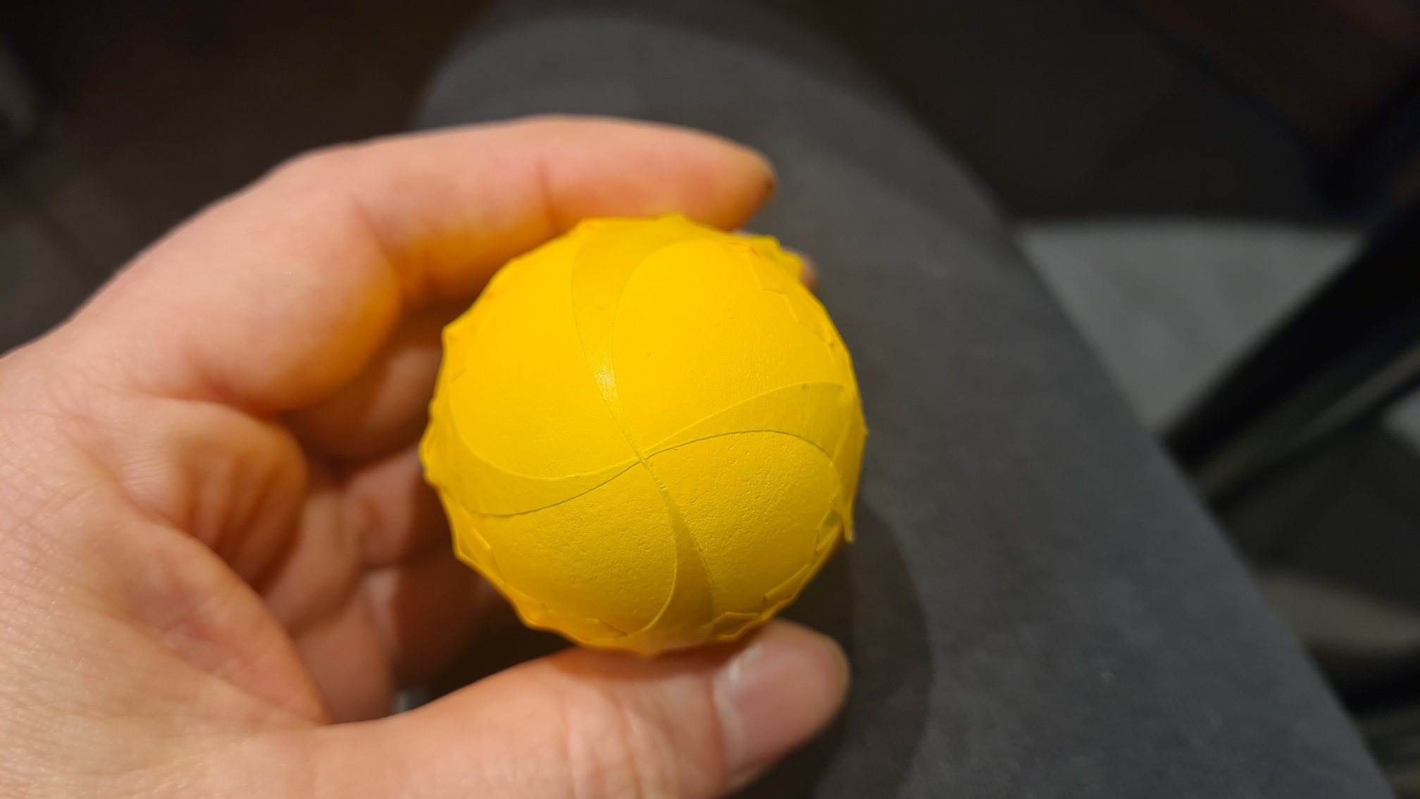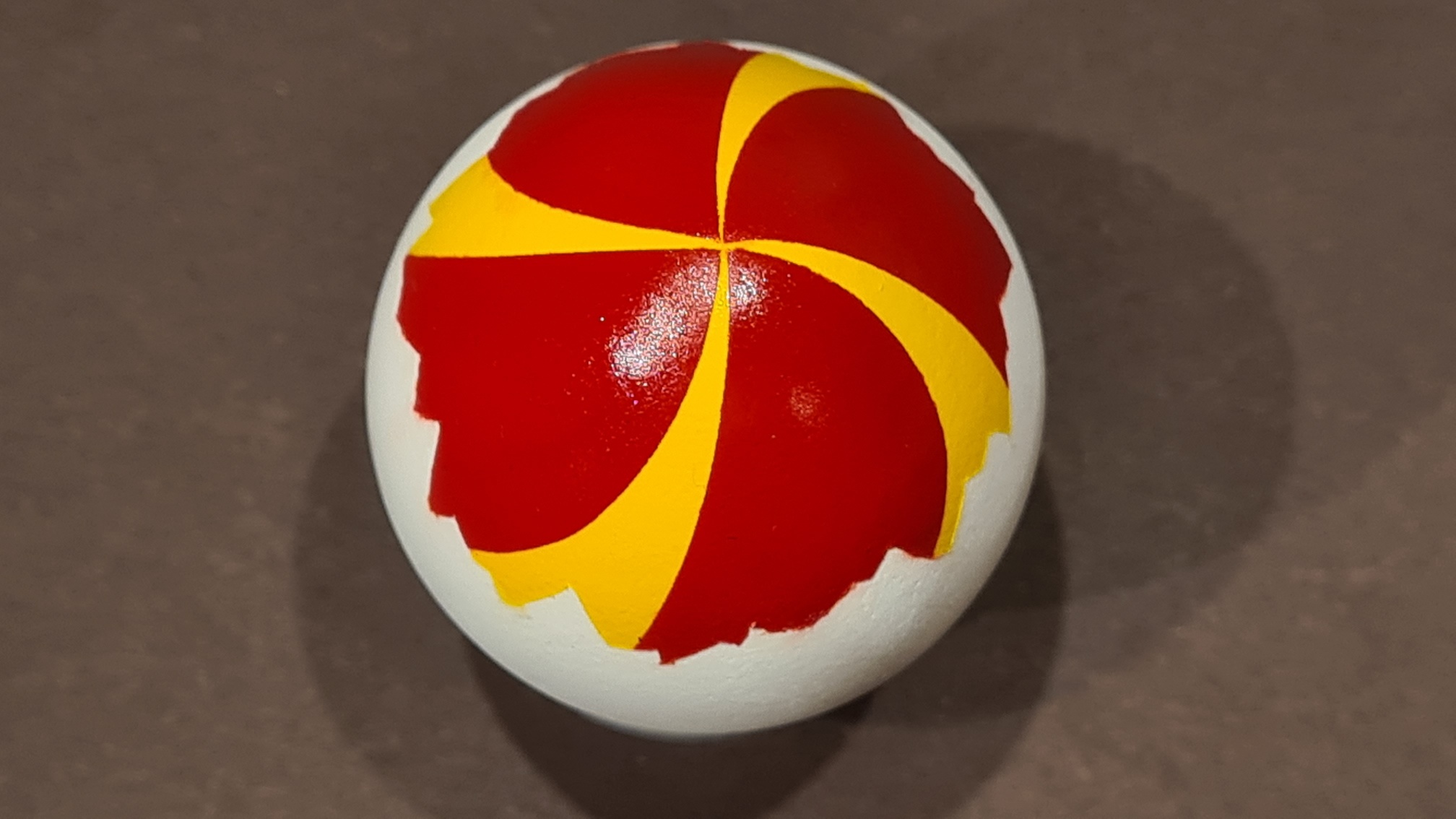 Hier das fertige Ei, innen bunt glänzend, außen langweilig matt: