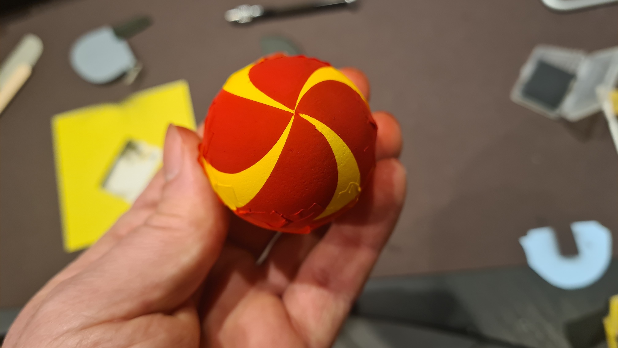 Der obere Teil wurde nun knallig gelb gesprüht. Sorry, hab vergessen ein Foto zu machen. Kann man sich aber hoffentlich noch vorstellen.