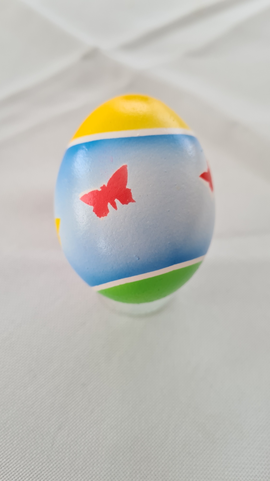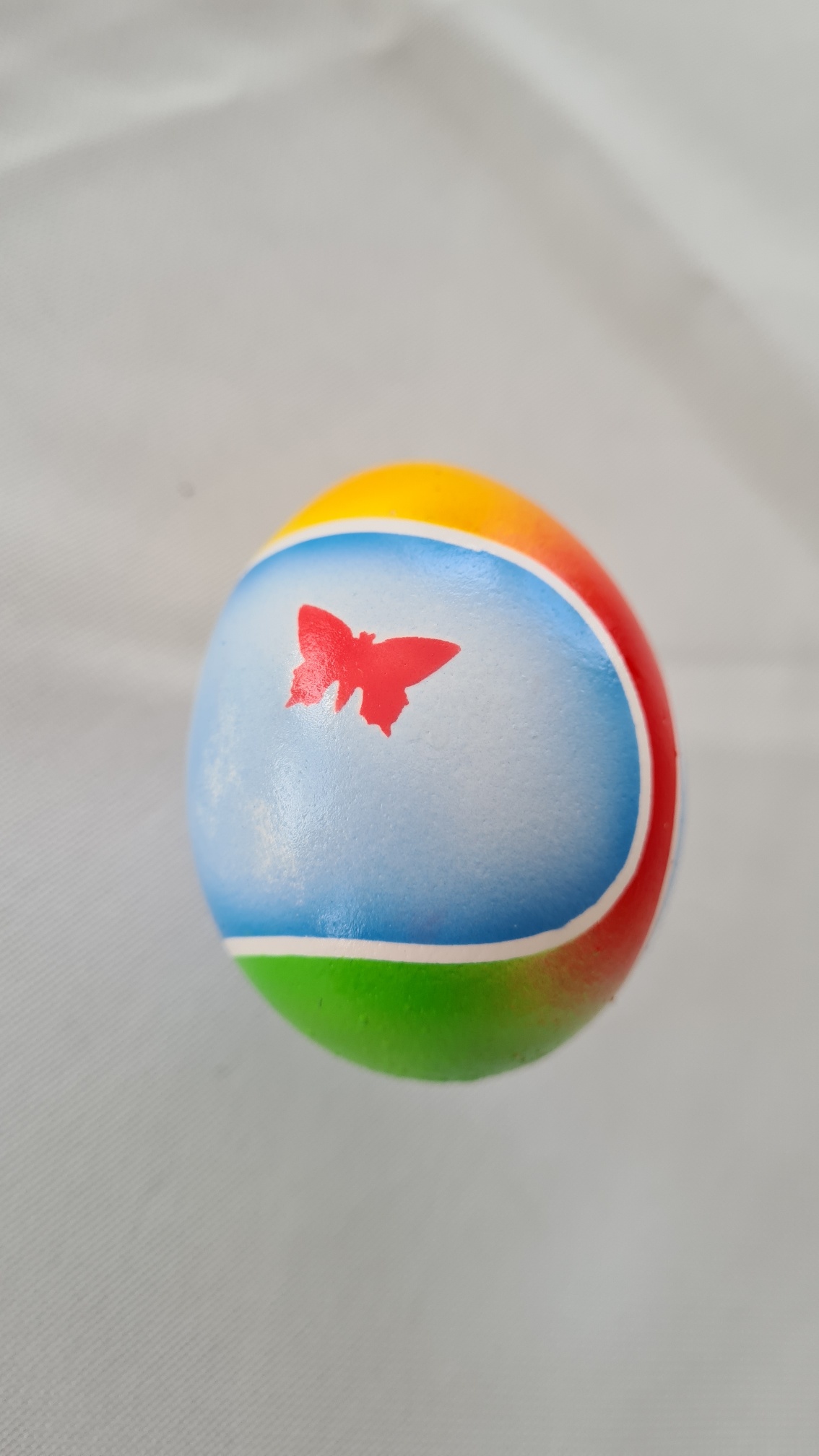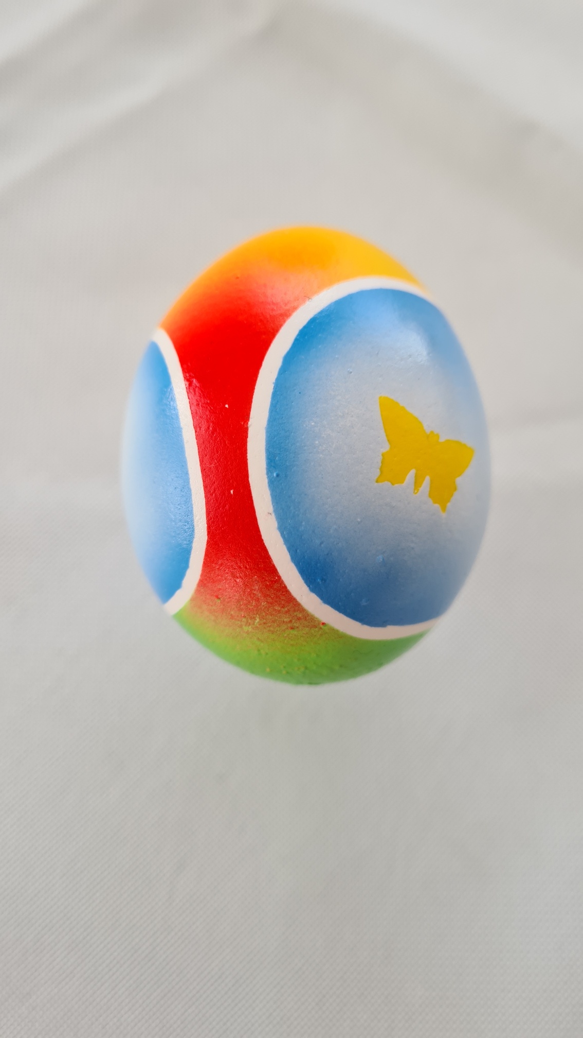 Gestern haben meine Tochter und ich noch ein Ei koloriert. Einfach ein bißchen mit Airbrush gespielt. Die Schnmetterlinge wurden mit einem Motivlocher (davon hat meine Tochter einige) in breites Maskierband gelocht. Das waren 2-3 Stunden Vater-Tochter-Quality-Time, wir hatten Spaß :D