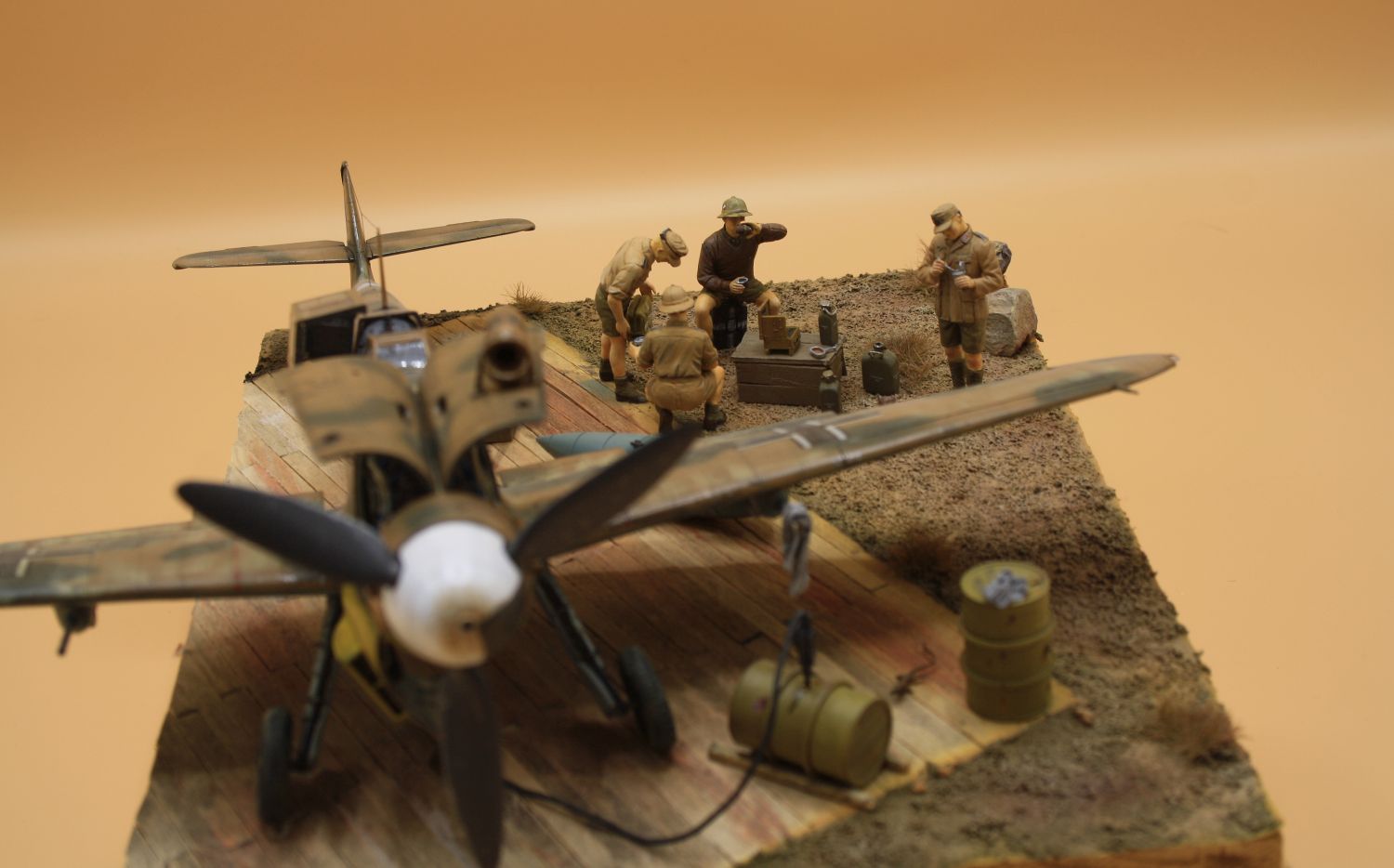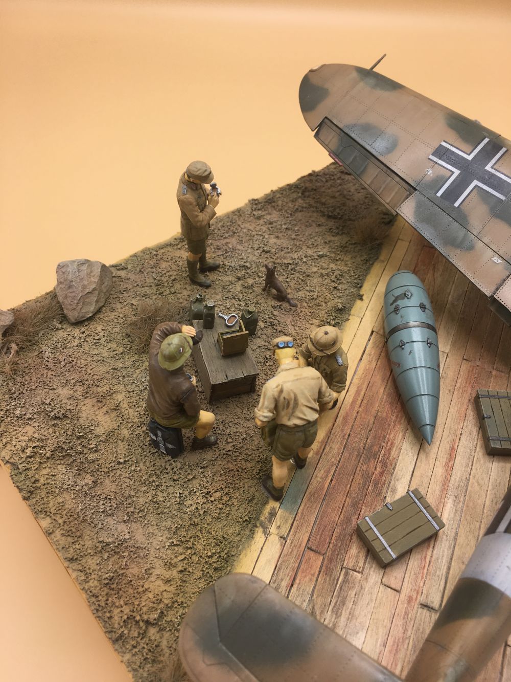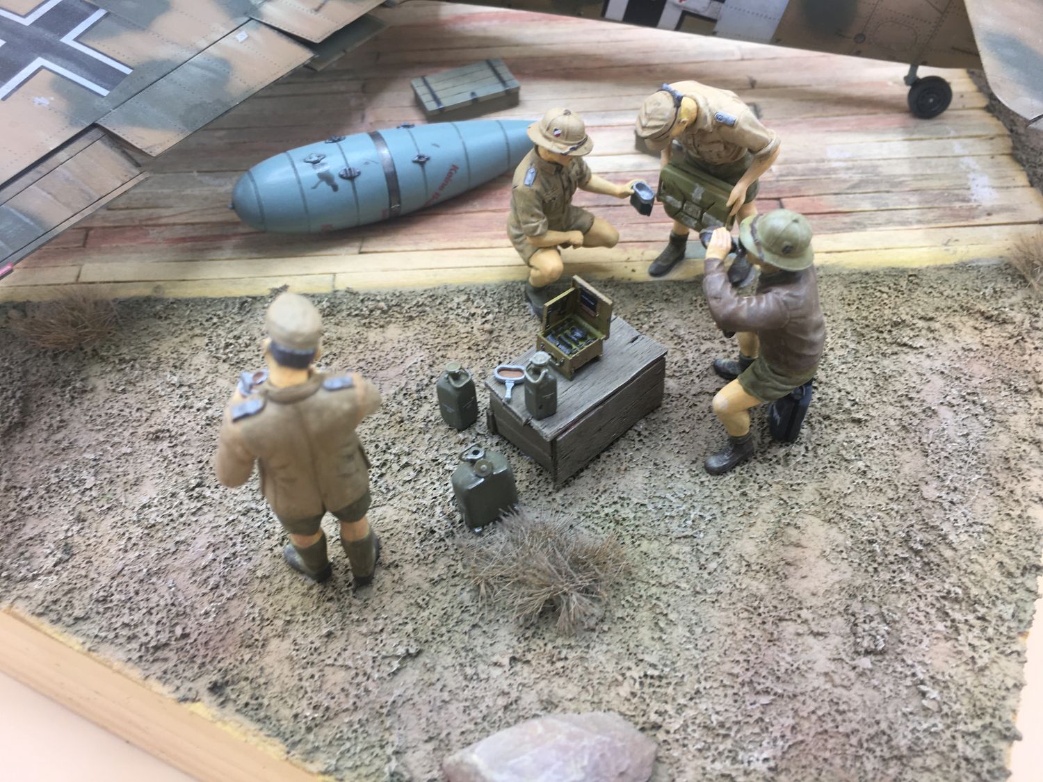 In Szene gesetzt auf einer alten Weinkiste mit Fastfood-Kaffeeumrührern und Kaffeesatz für den Boden. Die Figuren stammen von Dragon und die Kisten aus der Restekiste.