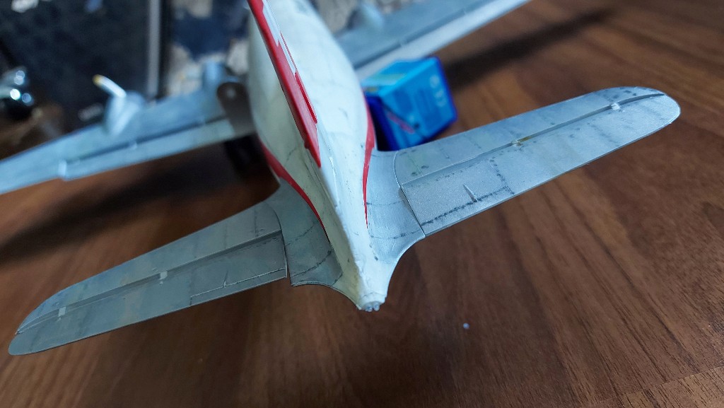 Den Übergang vom Cockpit-teil zum Rumpf hätte ich noch mehr retuschiert. Also glatt geschliffen oder mit Spachtelmasse angepasst.