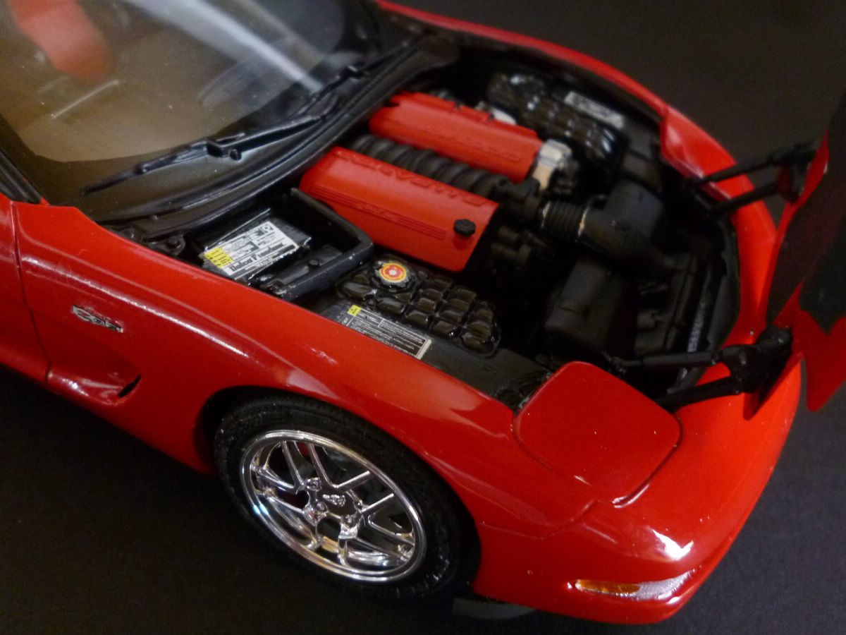 Ich habe mich bei dieser Corvette für den originalen Farbton torch red von GM entschieden. Versiegelt mit 2K-Klarlack. Für mich habe ich entschlossen, dass die stärksten Corvette nun torch red sein sollen. So wird bald eine C6 ZR-1 ebenfalls rot in die Galerie rollen.