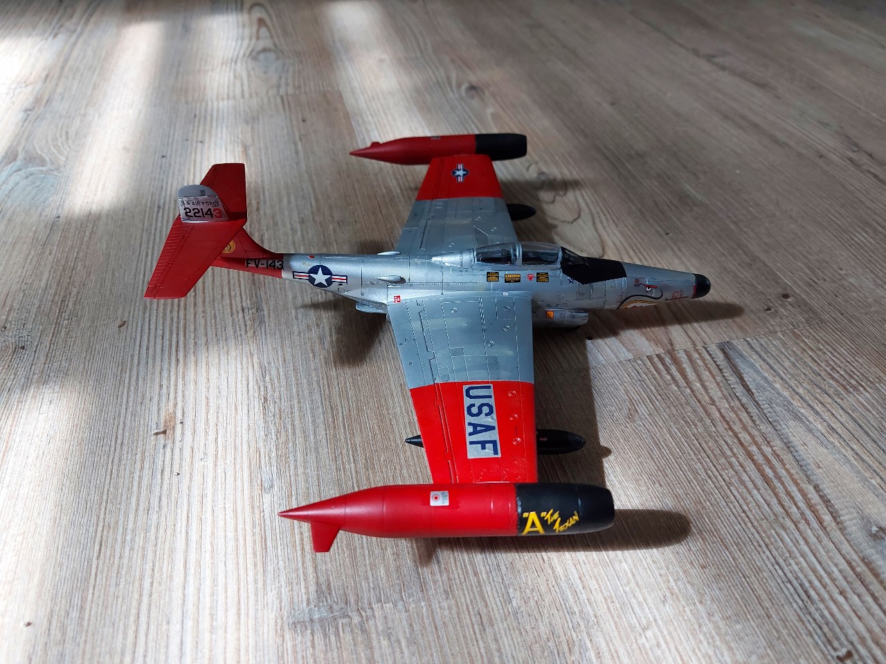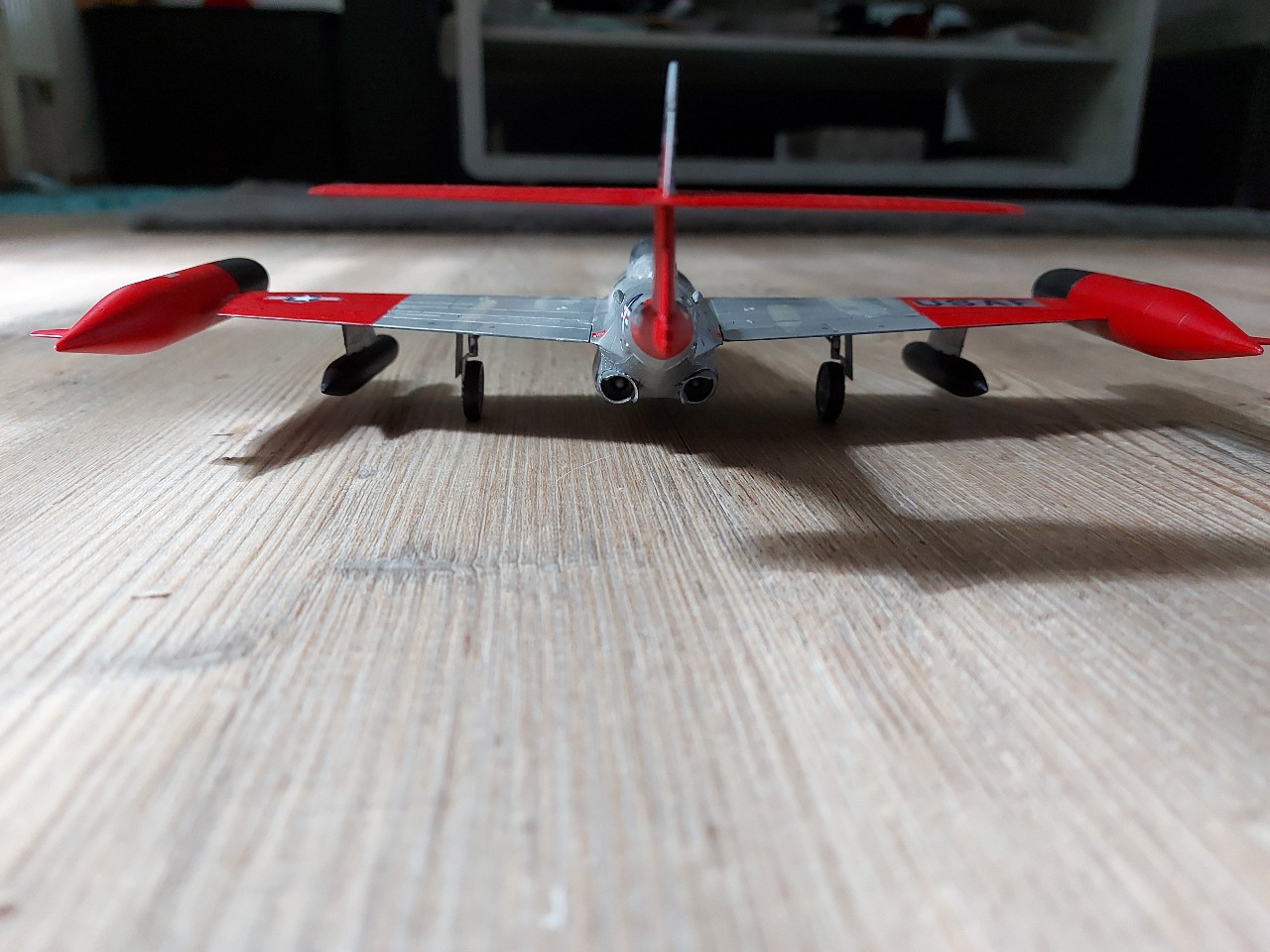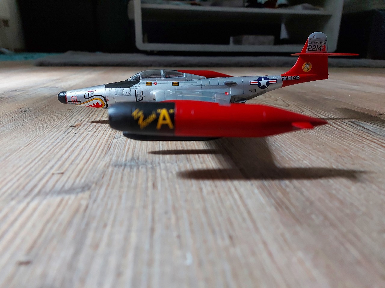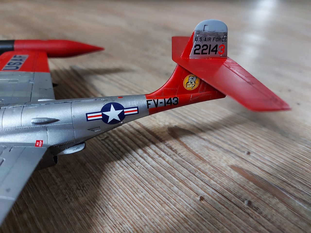 Ein eindrucksvoller Flieger. Man vertut sich leicht mit den Dimensionen, aber im Vergleich zum Beispiel mit dem ähnlich aussehenden F-84 G Thunderjet ist er riesig. Gut gemacht!