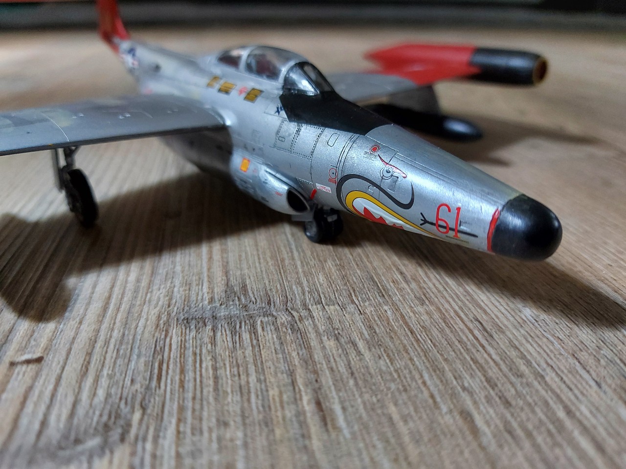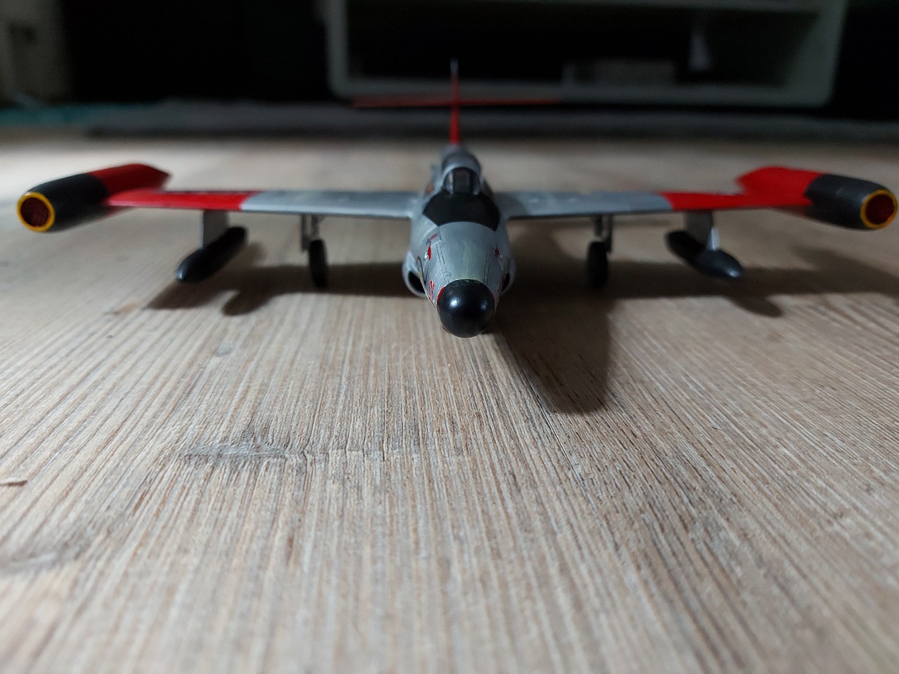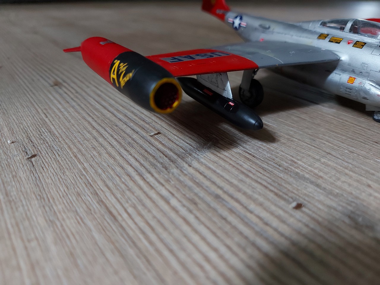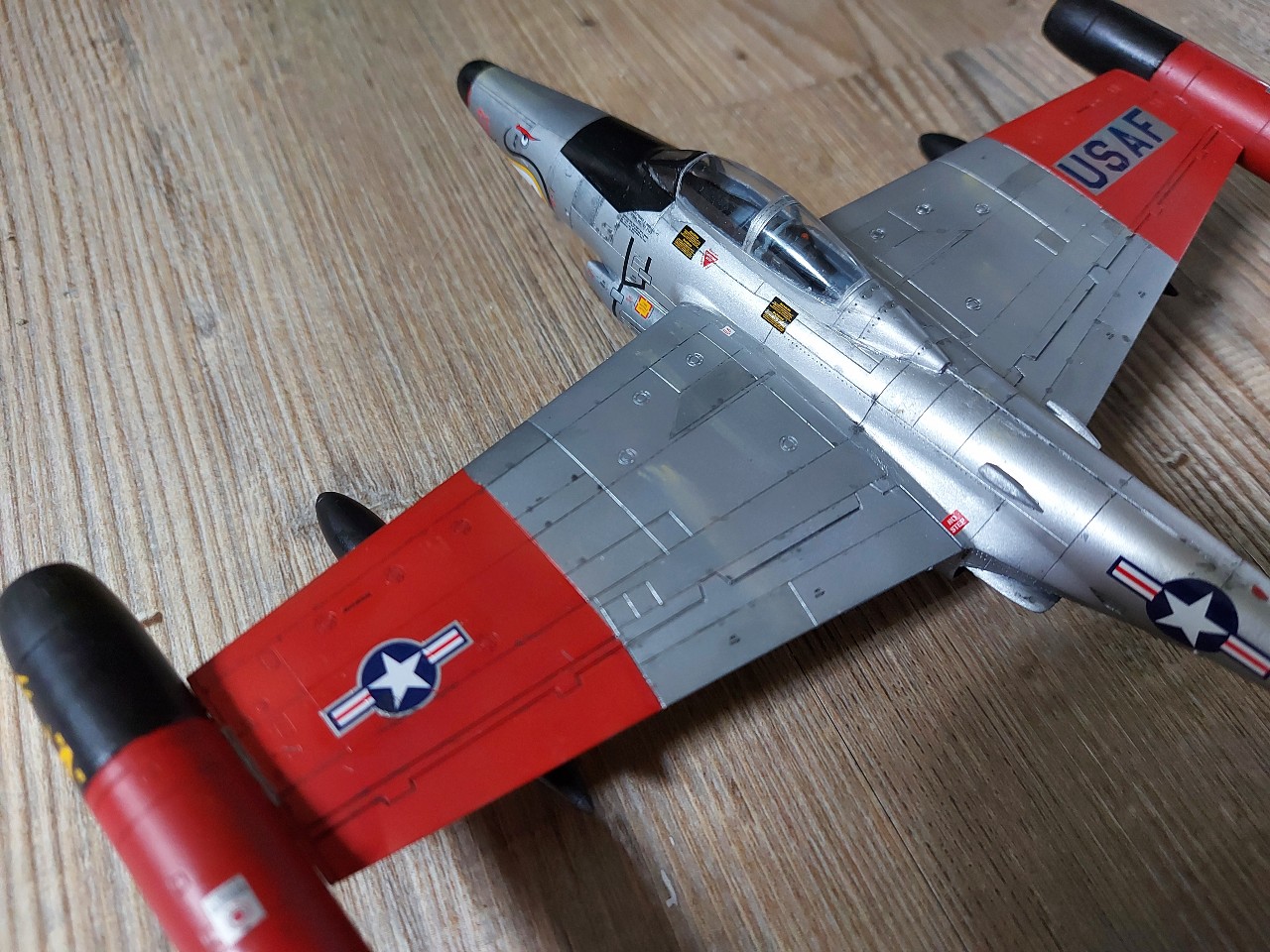 Ein eindrucksvoller Flieger. Man vertut sich leicht mit den Dimensionen, aber im Vergleich zum Beispiel mit dem ähnlich aussehenden F-84 G Thunderjet ist er riesig. Gut gemacht!