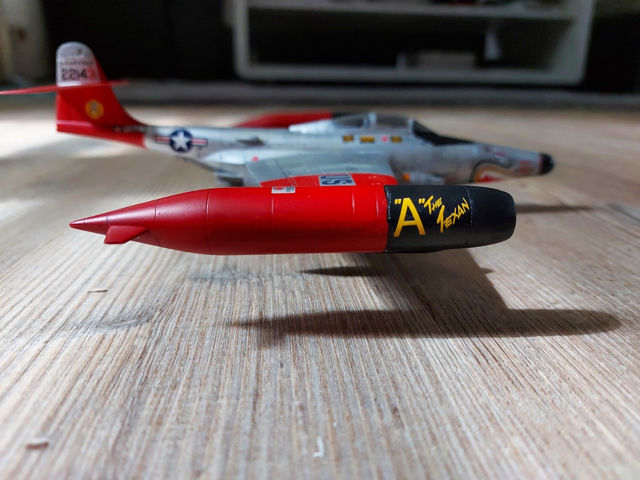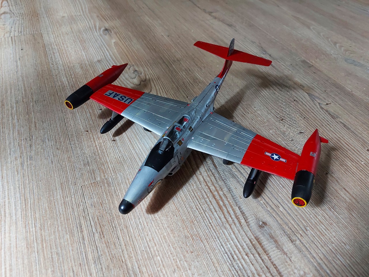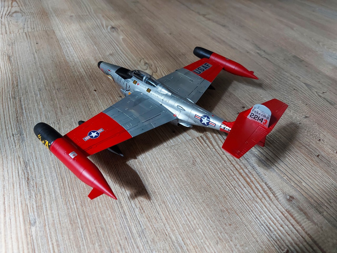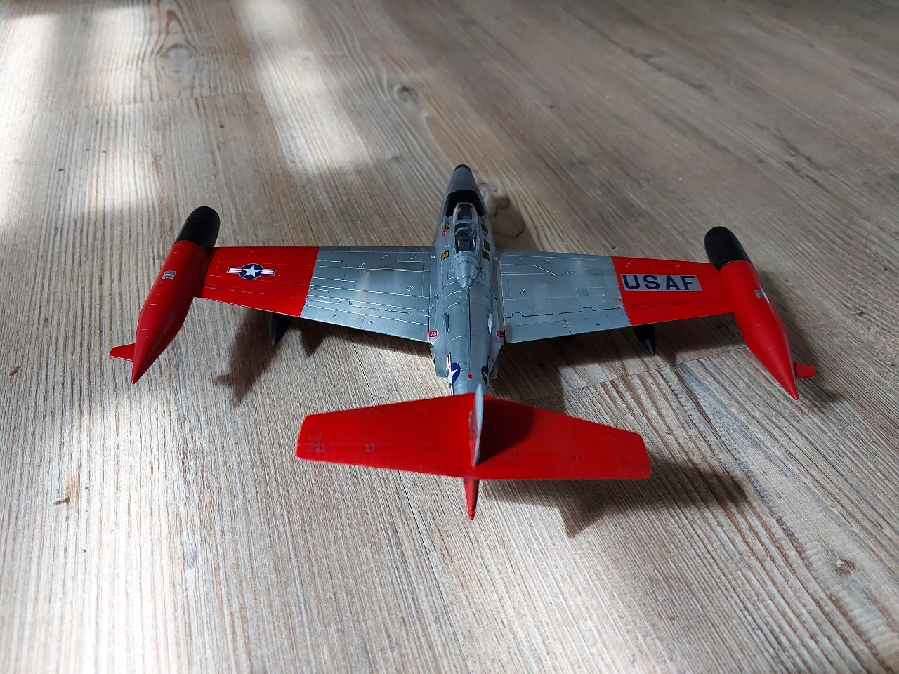 Ein eindrucksvoller Flieger. Man vertut sich leicht mit den Dimensionen, aber im Vergleich zum Beispiel mit dem ähnlich aussehenden F-84 G Thunderjet ist er riesig. Gut gemacht!