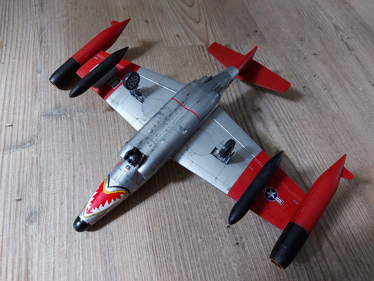 Das stimmt die F89 ist nicht alltäglich und hat auch zum Teil ganz interessante Geschichten vollbracht, auch ihre Vorgängerin, die P-61 Black Widow, war optisch recht exotisch. Das niedrige Fahrwerk hat mich ein wenig überrascht, aber das war ja für früher Strahljäger typisch. Aber wie bereits gesagt, ich bin stolz dass ich mir hier die Zeit genommen habe, alles sauber zu bauen und das werde ich so weiter machen :D
