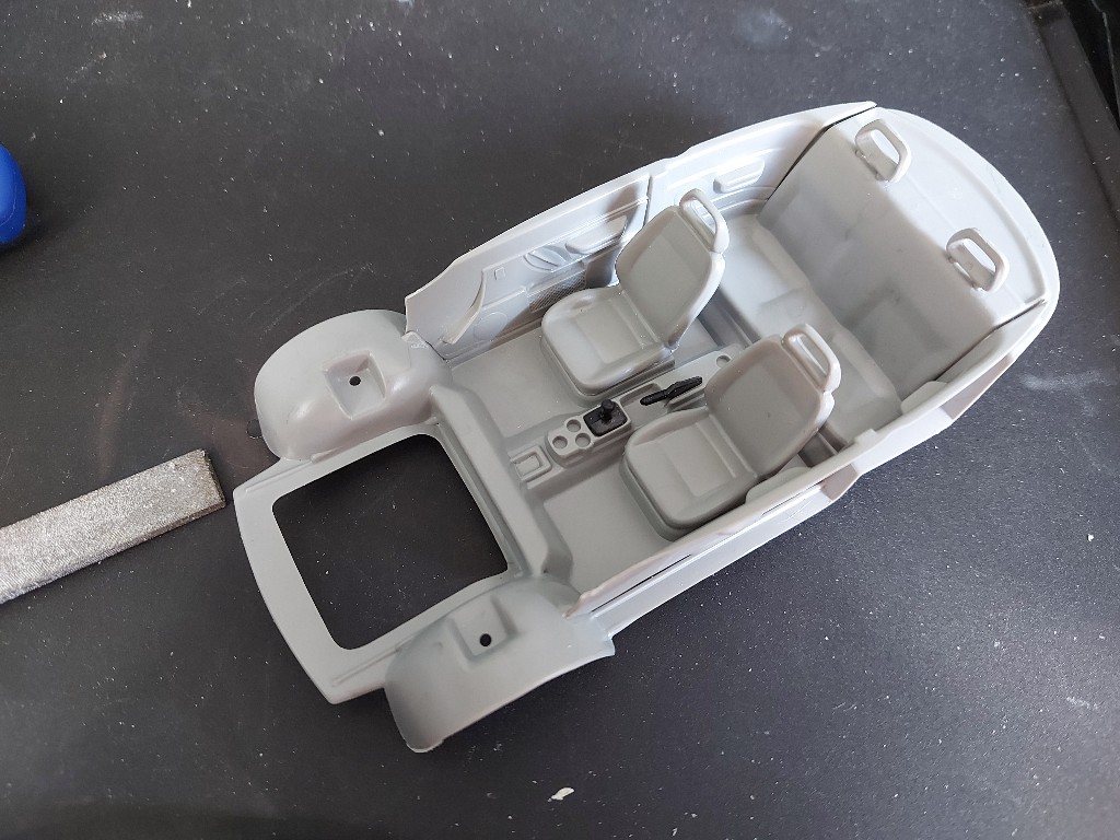 Man sieht hier auch schön das verbaute Blaulicht und wie es gespachtelt wurde.
