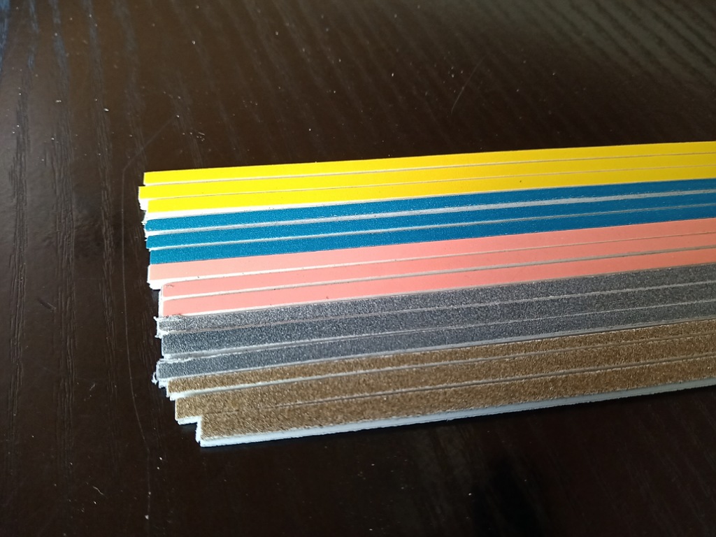 Es handelt sich um Sandpapiersticks in verschiedener Körnung, ca. 3 x 3 mm Querschnitt; ideal für enge Stellen, Ätzteile und kleine Bauteile.