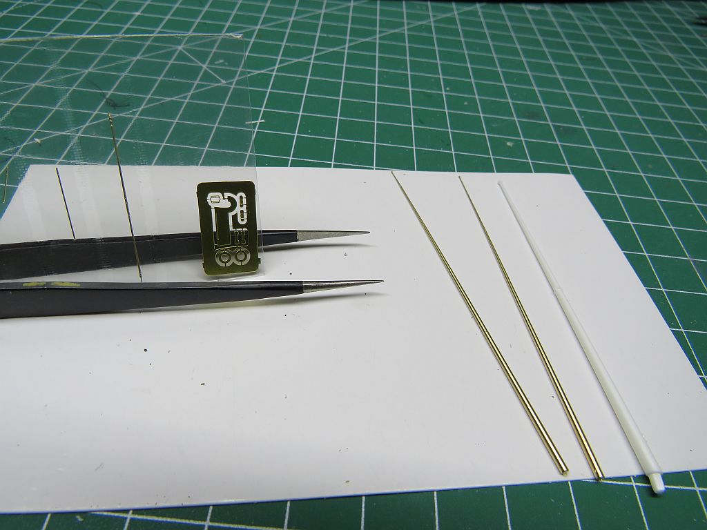Leider sind keine Ätzteil-Wanten für die Masten vorhanden und die Plastikwanten sind einfach zu dick. Deshalb habe ich die Ätzteil-Relings von Tom's Modelworks bestellt; da sind auch passende Eanten dabei.