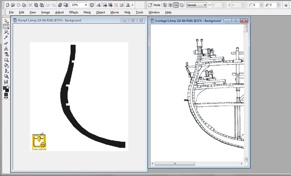 Als Beispiel habe ich mir ein Schnittmodell einer Englischen Fregatte ausgesucht.