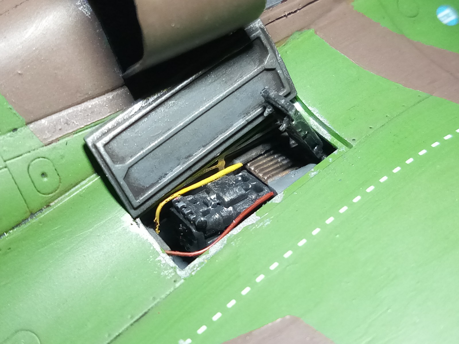 Die beiden Maschinenkanonen sind nun mit Deckel und Kabel versehen,