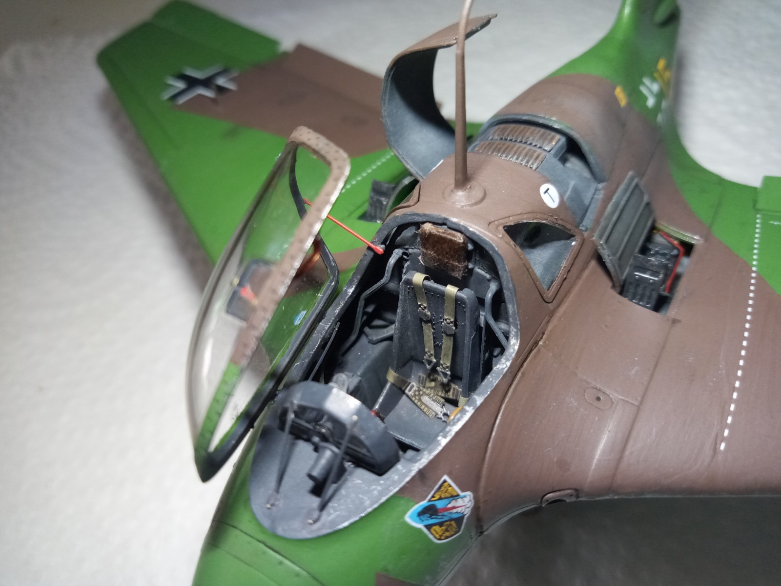 Das Cockpit ist nun auch fertig, mit Kabinendach und Arretierung.