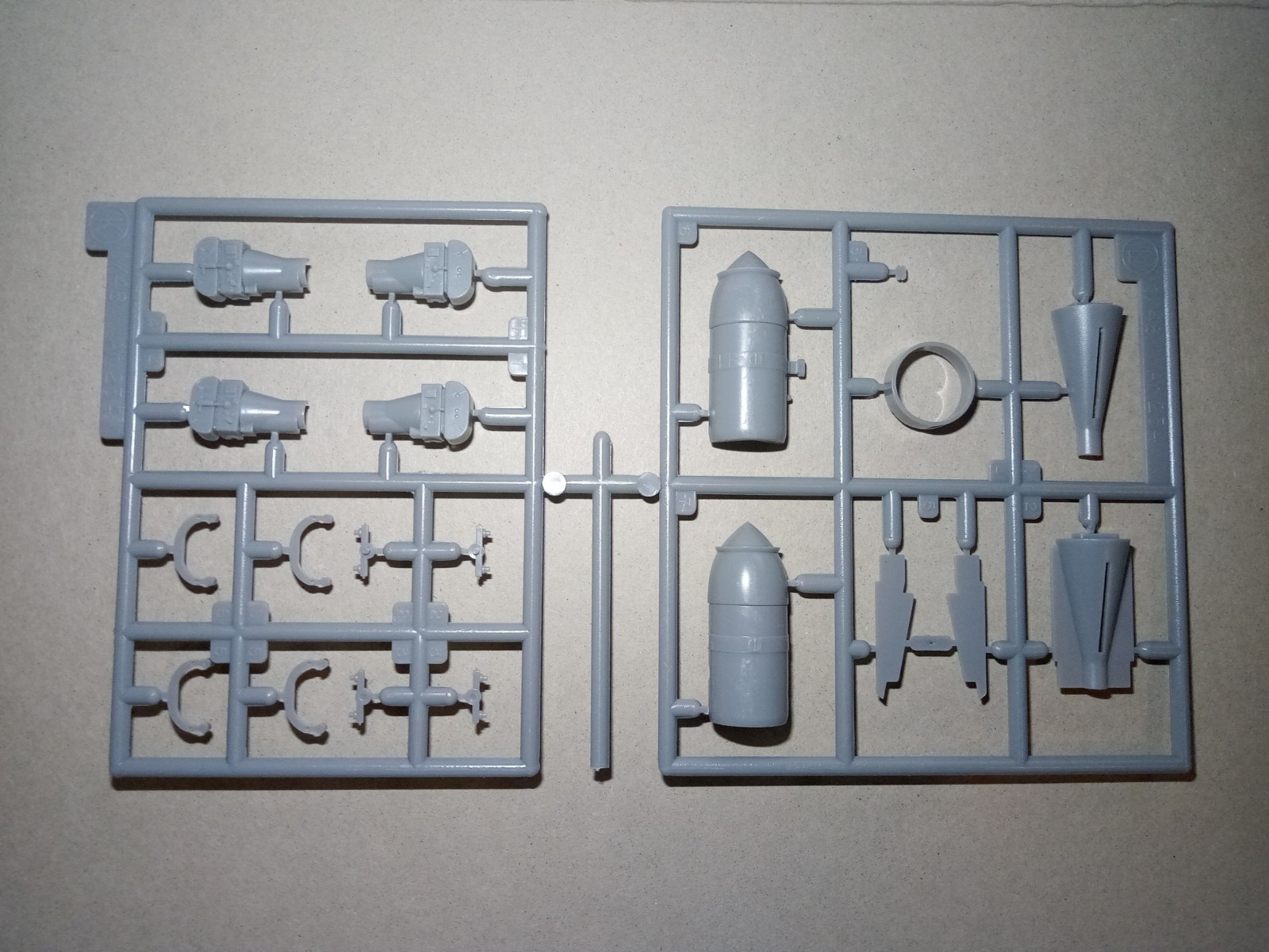 Hier liegen dem Bausatz 2 externe 300L Zusatztanks mit bei und eine SC 1000Kg Bombe.