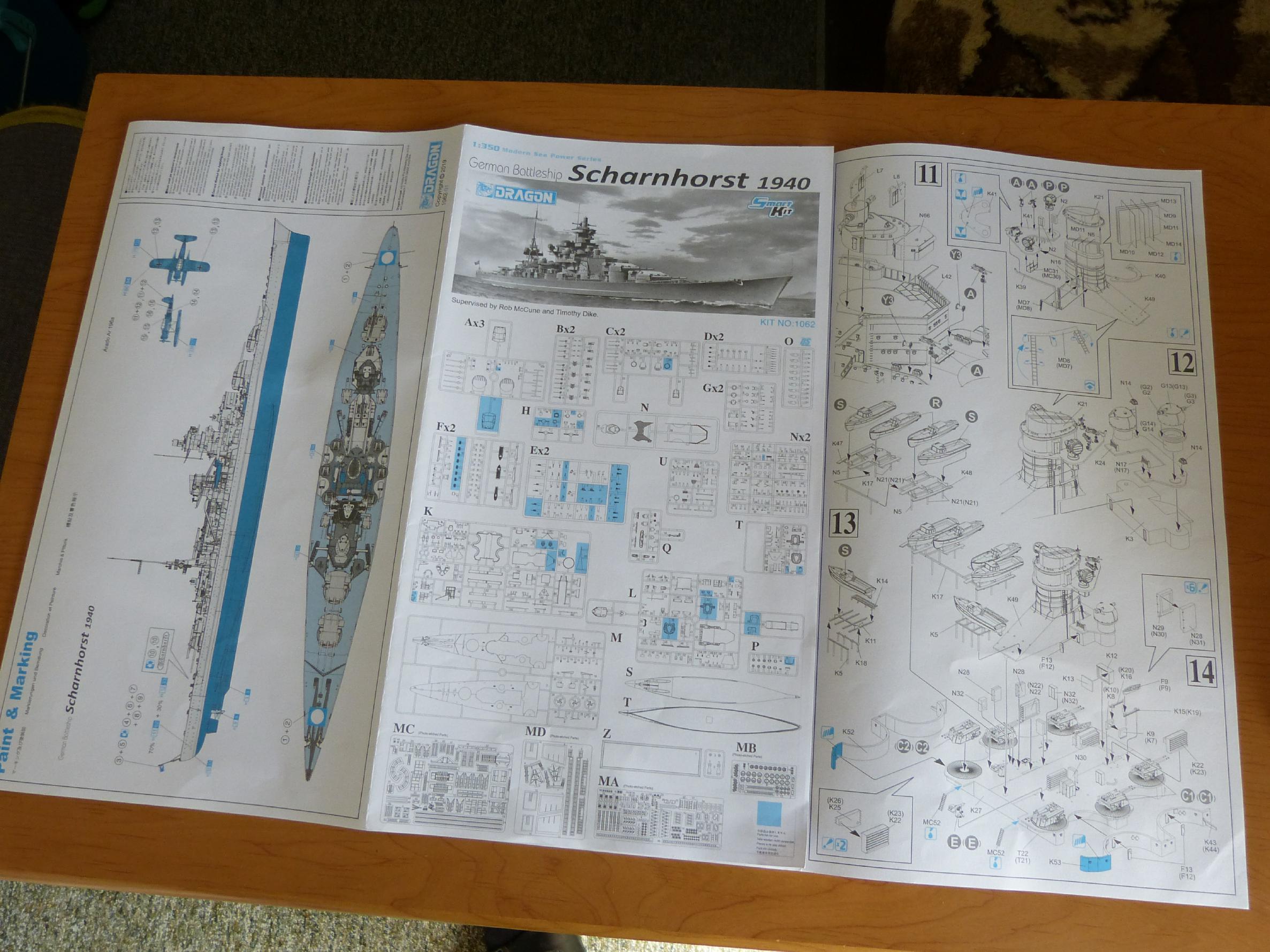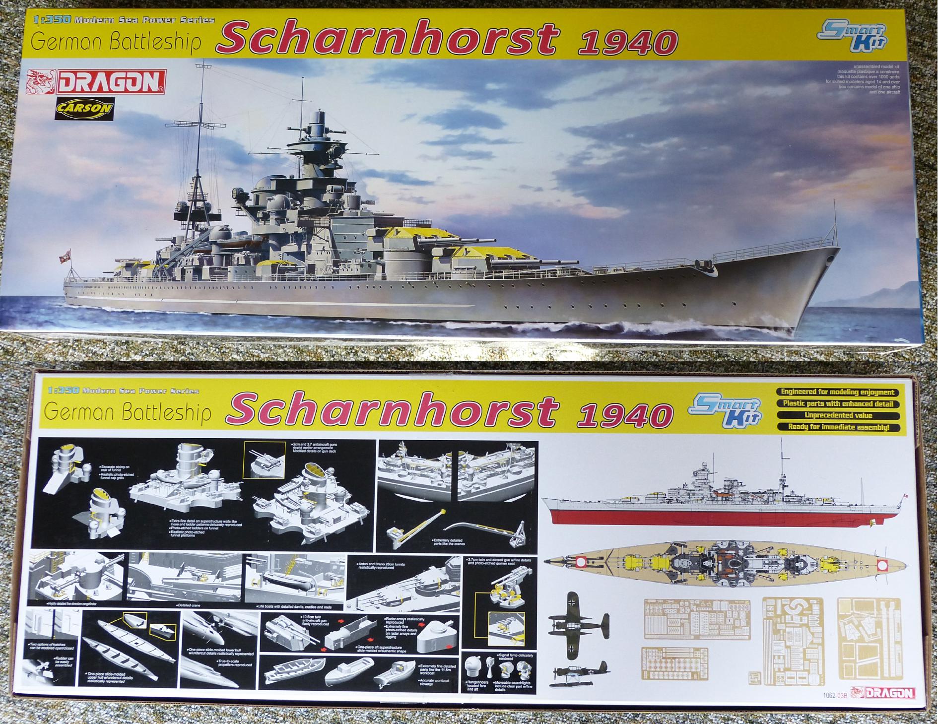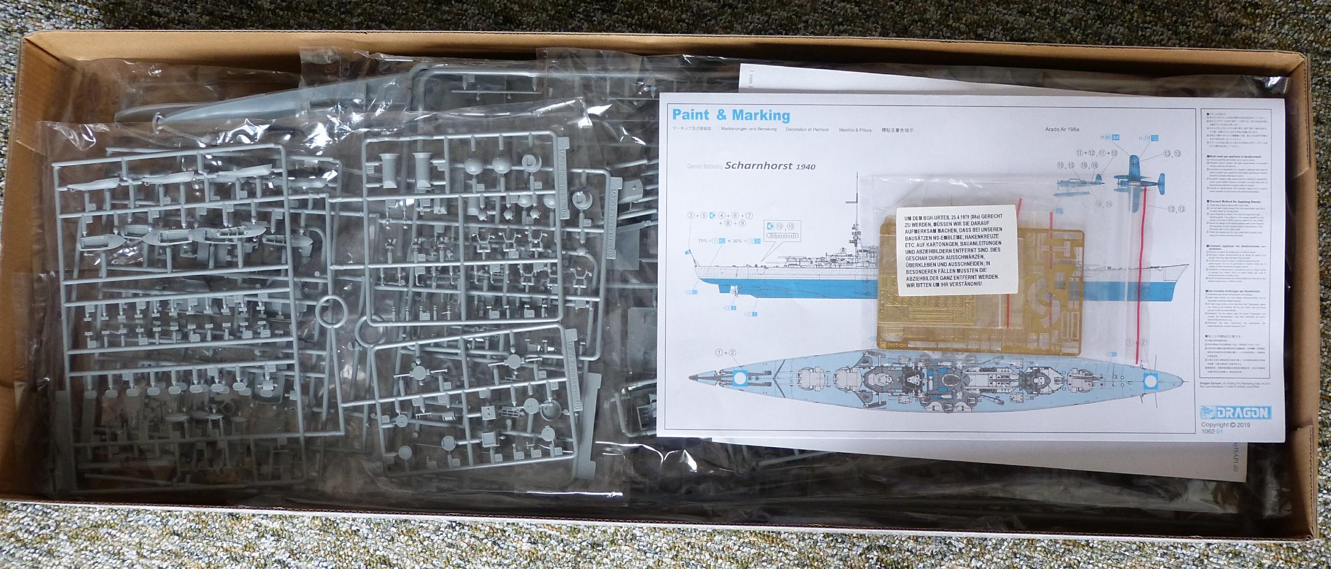 Auf Dragon‘s SCHARNHORST (SH) habe ich schon längere Zeit ein Auge geworfen. Da gibt es mittlerweile drei Varianten für unterschiedliche Ausrüstungsstände: 1040 (1943), 1036 (1941) und aktuell 1062 (1940). Eigentlich wollte ich die 1943er Variante bauen, der entsprechende Bausatz ist aber (wie auch 1036) kaum noch zum vernünftigen Preis zu bekommen.